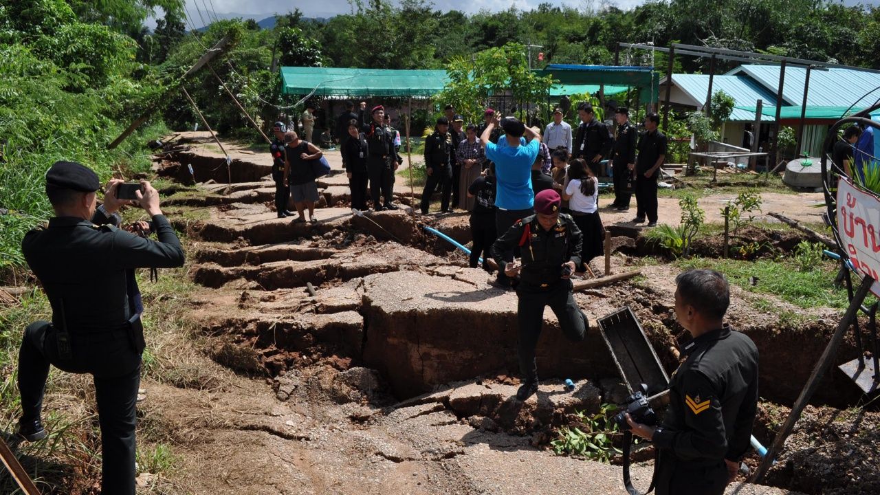 ผู้ว่าราชการจังหวัดลำปาง สั่งอพยพชาวบ้าน 9 หลังคา ออกจากพื้นที่แผ่นดินทรุดตัว กระทบ 12.5 ไร่ ที่บ้านห้วยคิง อ.แม่มาะ บางจุดลึกเกือบ 2 เมตร เจ้าหน้าที่เร่งหาสาเหตุ คาดแผ่นดินเกิดการเคลื่อนตัวที่จุดดังกล่าว..