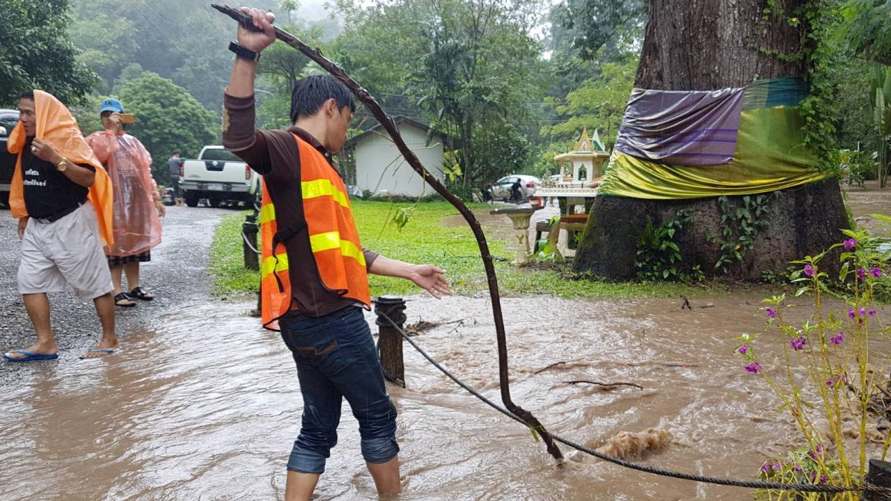เมื่อเวลา 12.30 น. วันที่ 17 ต.ค. 60 หลังจากที่ฝนได้ตกลงมาอย่างหนักในพื้นที่อุทยานแห่งชาติดอยสุเทพ-ปุย จากอิทธิพลของพายุขนุน ที่อ่อนกำลังเป็นดีเปรสชันแล้ว ทำให้น้ำป่าไหลหลากลงมาตามลำห้วย เข้าท่วมที่ลุ่มติดกับลำห้วย โดยเฉพาะร้านบ้านสวนกาแฟที่อยู่ติดกับริมน้ำ ถูกน้ำป่าไหลหลากเข้าท่วมอย่างรวดเร็ว ทำให้คอกาแฟที่กำลังนั่งจิบกาฟาชมธรรมชาติอยู่นั้น