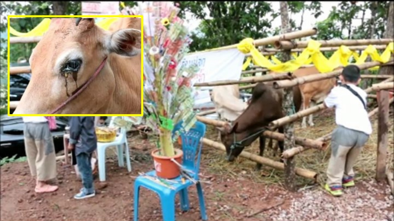 แม่วัวท้องแก่น้ำตาไหลพราก ถูกไถ่ชีวิตออกมาพร้อมพ่อวัว และลูก รวม 4 ตัวก่อนถูกเชือด คณะศรัทธาไปเจอถูกขายให้โรงฆ่าสัตว์ รีบนำเงินไปไถ่ออกมาทอดกฐินถวายเป็นพระราชกุศล ที่สำนักสงฆ์ดอยพระธาตุขะเนจื้อ อ.แม่ระมาด จ.ตาก...