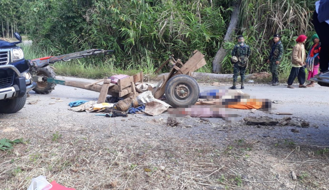 สอบสวนทราบว่า ก่อนเกิดเหตุคนทั้งหมดเป็นครอบครัวผู้ลี้ภัยในศูนย์อพยพบ้านนุโพ ต.อุ้มผาง เดินทางมาจากบ้านกุยต๊ะ เพื่อมุ่งหน้าไปบ้านเปิงเคลิ่ง ต.อุ้มผาง มาถึงที่เกิดเหตุ เกิดลมพายุพัดแรง จู่ๆ ต้นไม้ขนาดใหญ่ที่อยู่ริมทางเกิดหักโค่นลงมากลางรถอีต๊อกพอดี ทับร่างคนทั้งหมด บางคนกระเด็นตกรถโดยผู้เสียชีวิตทั้ง 3 รายถูกต้นไม้ทับร่างเละ.