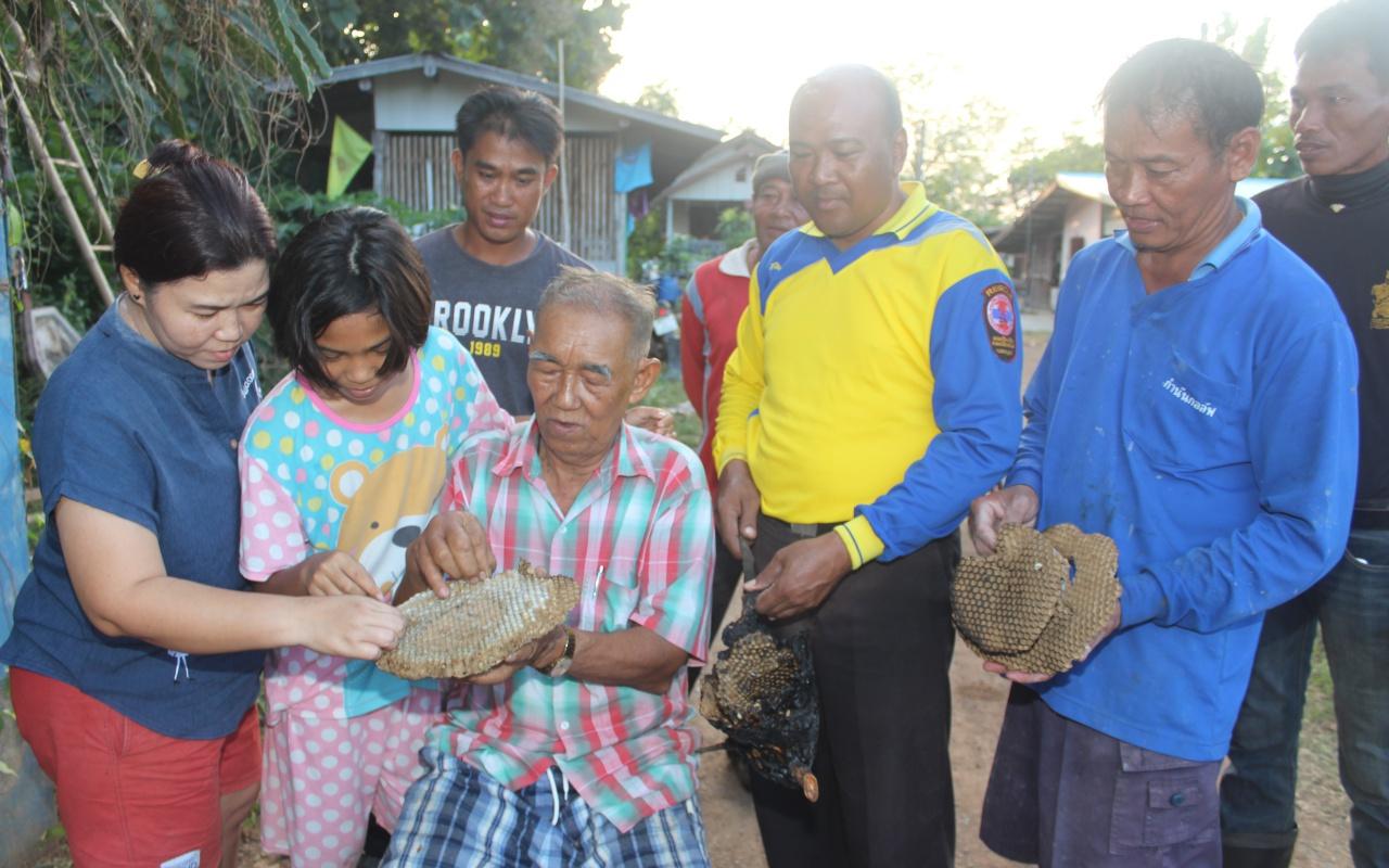เมื่อช่วงเย็นวันที่ 12 พ.ย. เจ้าหน้าที่กู้ภัยชนแดนสงเคราะห์ ได้รับแจ้งจากนายมนัส ปานรัตน์ อายุ 76 ปี สมาชิก อบต.ดงขุย อ.ชนแดน จ.เพชรบูรณ์ ว่า ได้รับความเดือดร้อนถูกฝูงต่อหัวเสือ ซึ่งทำรังอยู่บนต้นสักหน้าบ้าน สูงประมาณ 15 เมตร ได้ไล่ต่อยลูกหลานและสัตว์เลี้ยง เช่น หมา แมว วัว และไก่ ได้รับบาดเจ็บ