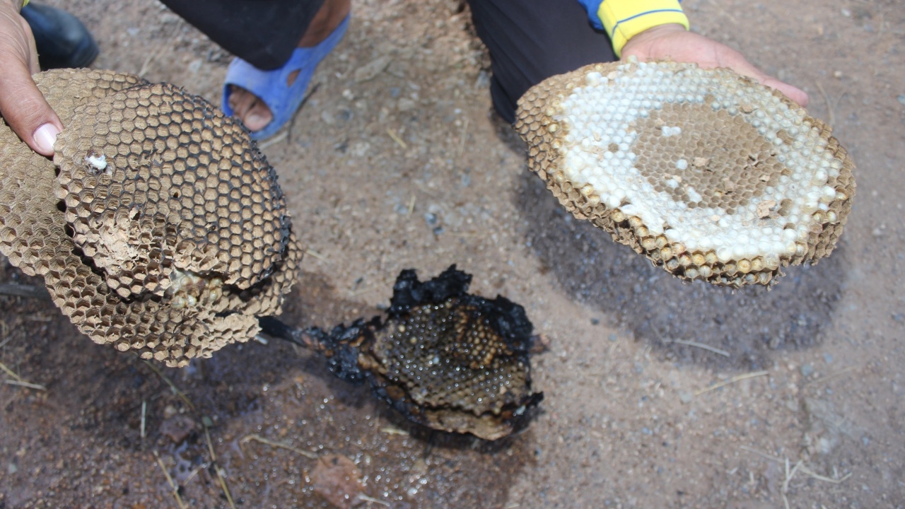 ล่าสุดเจ้าหน้าที่กู้ภัยชนแดนสงเคราะห์ ได้ใช้คบเพลิงเผาทำลายรังต่อเป็นที่เรียบร้อยแล้ว สร้างความโล่งใจให้กับชาวบ้านในละแวกดังกล่าว.