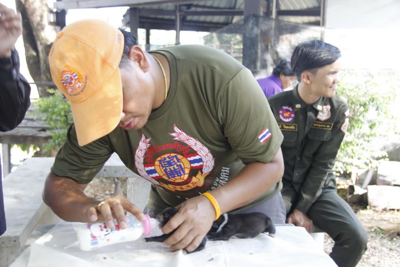 อย่างไรก็ตาม เนื่องจากลูกสุนัขเพิ่งคลอดและแม่สุนัขตายจึงไม่มีนมกิน สภาพจึงอ่อนแรงและอิดโรยอย่างเห็นได้ชัด ร้องครางตลอดเวลา หน่วยกู้ภัยได้หานมมาใส่ขวดมาให้กิน โดยลูกสุนัขก็พยายามดูดกินนมจากขวดอย่างหิวโหย ถ้าหากไม่มีคนช่วยขึ้นมาก็คงหิวตายในไม่ช้านี้ โดยนางชัยยาภัทร์ ขอเก็บไว้เลี้ยงเอง.
