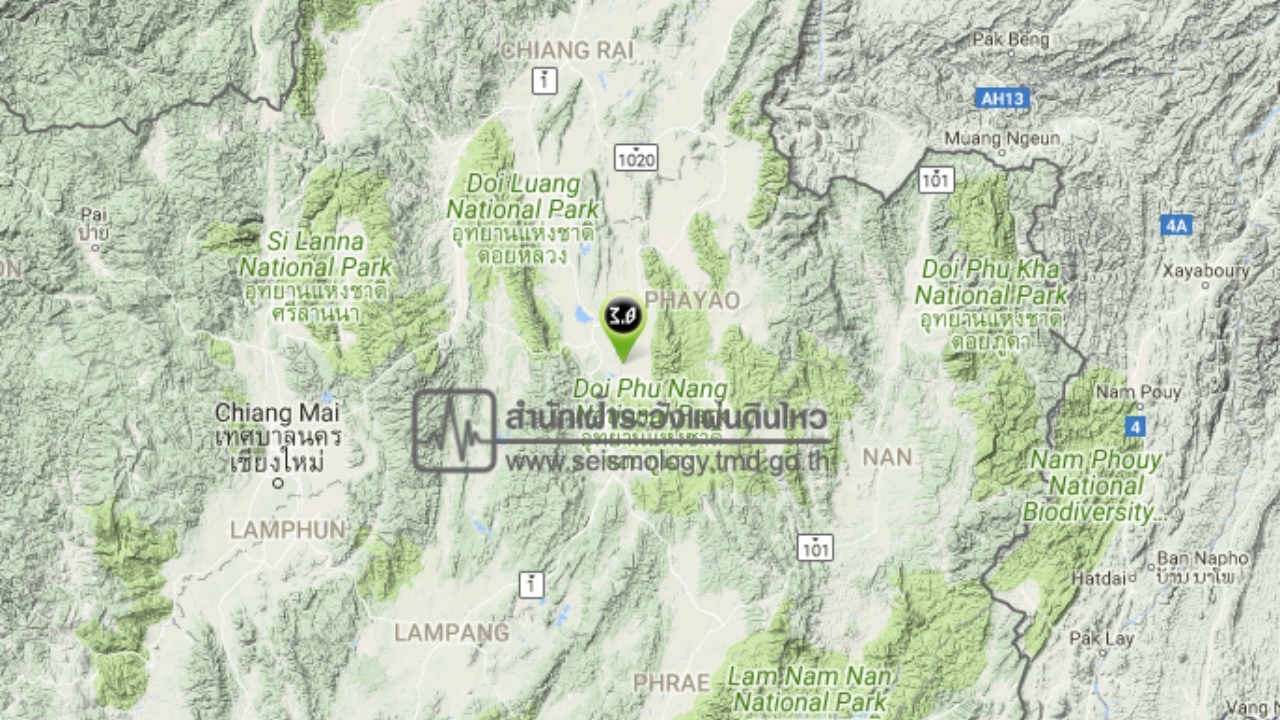 เกิดแผ่นดินไหว ขนาด 3.0 ที่ จ.พะเยา เบื้องต้น ยังไม่ได้รับรายงานความรู้สึกสั่นไหว