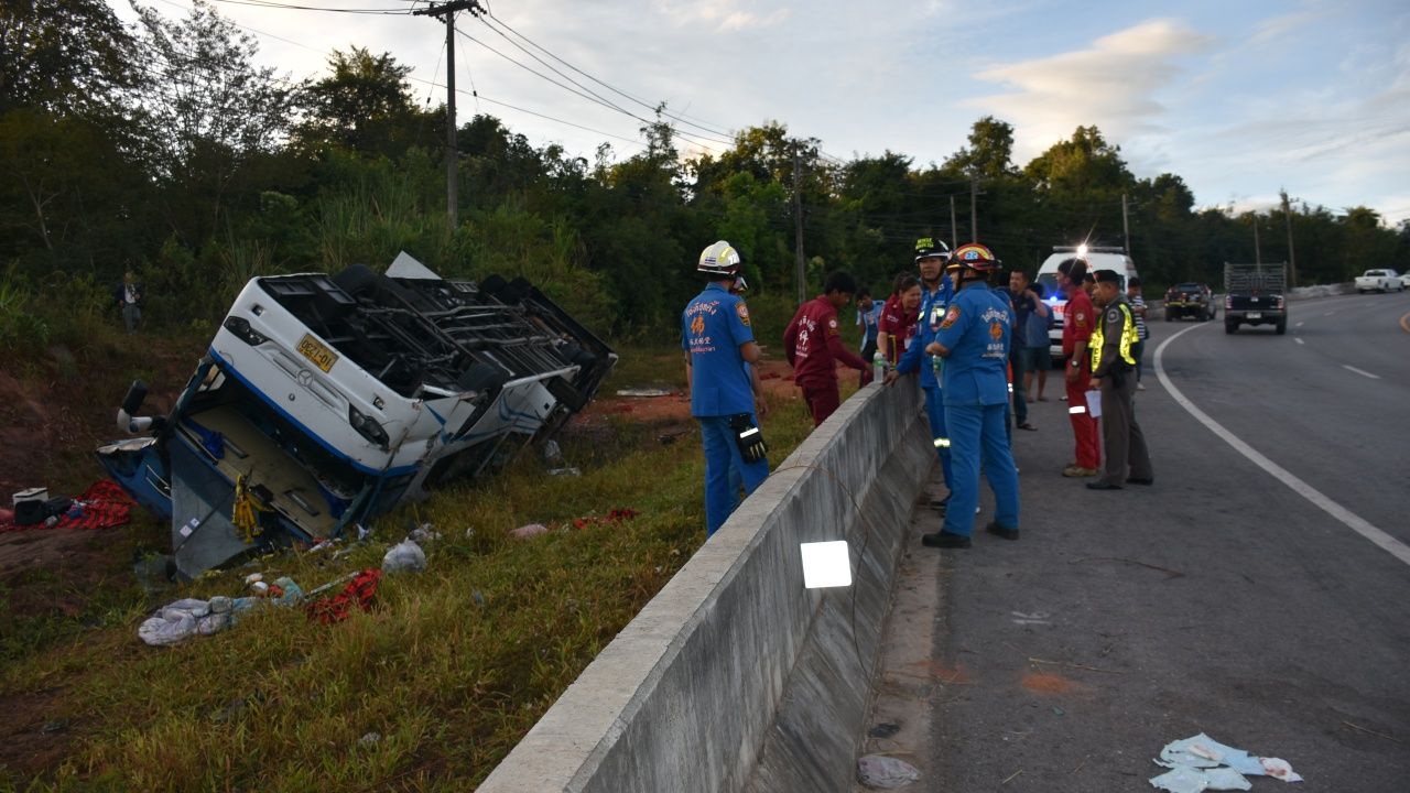 จากเหตุการณ์รถทัวร์โดยสารพลิกคว่ำตกถนนสายพิษณุโลก-หล่มสัก เมื่อเวลา 04.30 น. วันที่ 20 พ.ย. ร.ต.อ.เอกกมล จันทบุรี รอง สว.(สอบสวน) สภ.บ้านแยง อ.นครไทย จ.พิษณุโลก รับแจ้งมีอุบัติเหตุรถทัวร์เสียหลักพลิกคว่ำตกลงไปริมถนนพิษณุโลก-หล่มสัก กม.ที่ 320-321 หมู่ 10 บ้านห้วยทรายเหนือ ต.ห้วยเฮี้ย ช่วงโค้งลงเขา มีผู้บาดเจ็บจำนวนหลายราย ไปตรวจสอบพร้อมเจ้าหน้าที่หน่วยกู้ภัยบูรพา เจ้าหน้าที่หน่วยกู้ภัยมูลนิธิประสาทบุญสถาน และเจ้าหน้าที่หน่วยกู้ภัยมูลนิธิมิตรภาพมงคลธรรม