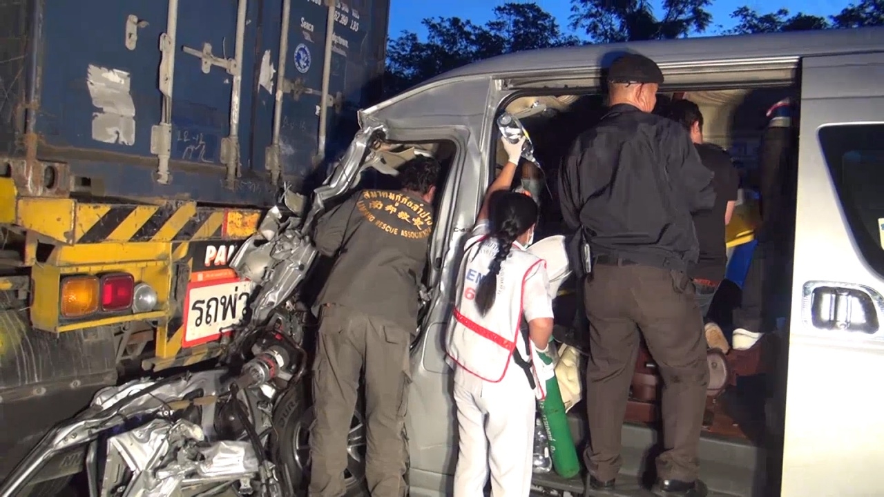 รถตู้นำนักท่องเที่ยวแบบครอบครัวจะไปเชียงใหม่ ระหว่างทางขึ้นเขาที่ลำปาง พุ่งชนท้ายรถเทรลเลอร์ ผู้โดยสารลูกเล็กเด็กแดงบาดเจ็บ 12 คน คนขับยอมรับ หลับใน เผยเพิ่งเกิดเหตุสลดรถตู้ชนไฟคลอก 14 ศพที่สิงห์บุรี...