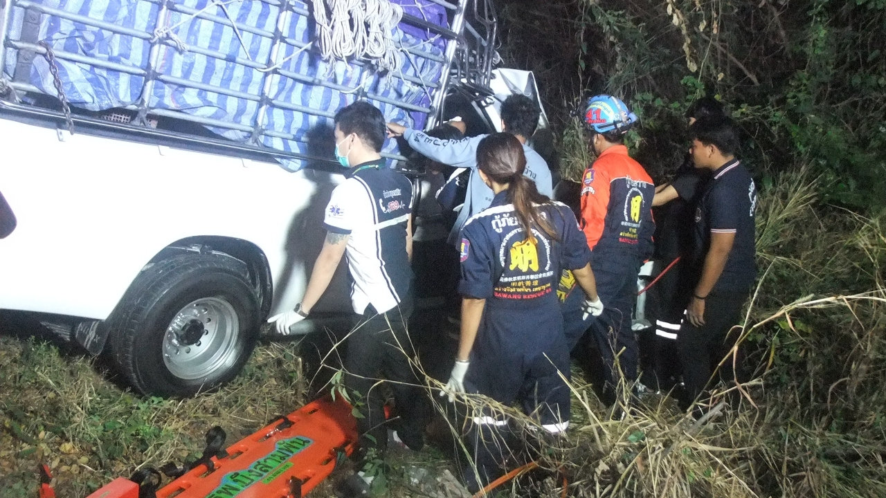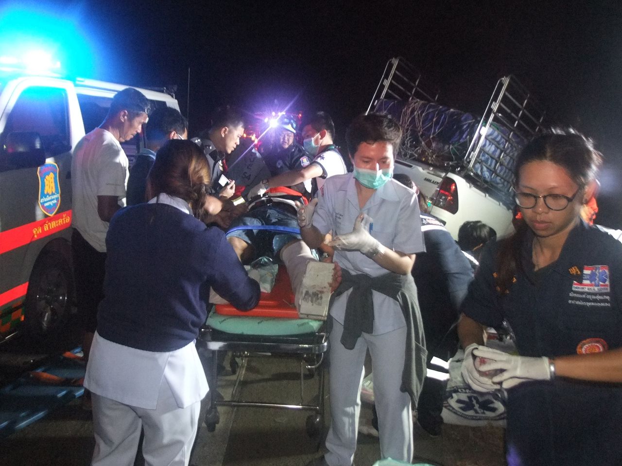 ที่เกิดเหตุ พบรถยนต์ปิกอัพ ยี่ห้อ โตโยต้า รีโว่ สีขาว หมายเลขทะเบียน บล 1066 ลพบุรี ทราบชื่อคนขับชื่อ นายจรัญ ช่วยสุด อายุ 38 ปี อยู่บ้านเลขที่ 97 / 3 หมู่ 5 ต.ซับสมบูรณ์ อ.ลำสนธิ จ.ลพบุรี ทราบว่า ได้ขับรถยนต์ปิกอัพคันเกิดเหตุ มาจาก จ.ลพบุรี มาตามถนนโดยบรรทุกรังผลไม้เปล่าจะไปรับผลไม้ที่ จ.พิษณุโลก เมื่อมาถึงจุดเกิดเหตุ ได้เกิดเฉี่ยวชนกับรถบรรทุก จนรถปิกอัพด้านหน้าพังยุบย่นมาติดคนขับ ทำให้ นายจรัญ ช่วยสุด คนขับปิกอัพติดอยู่ในรถ ได้รับบาดเจ็บสาหัส ขาข้างซ้ายหัก ต้องใช้ตัดถ่างตัดงัดออก และถูกนำตัวส่งโรงพยาบาลบึงสามพัน