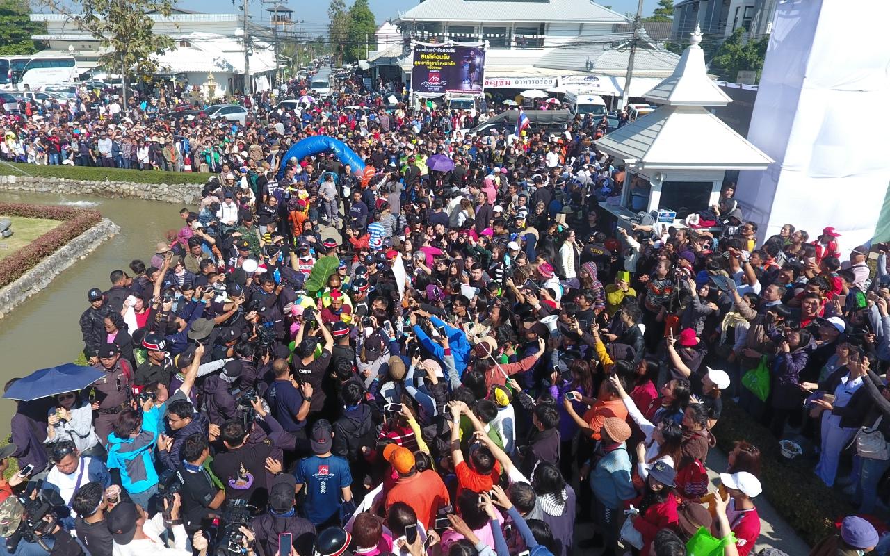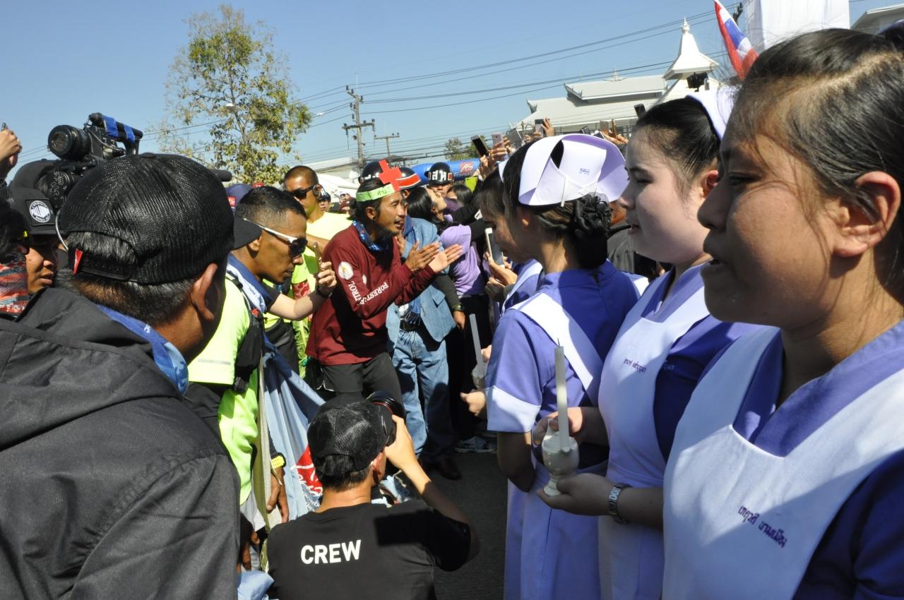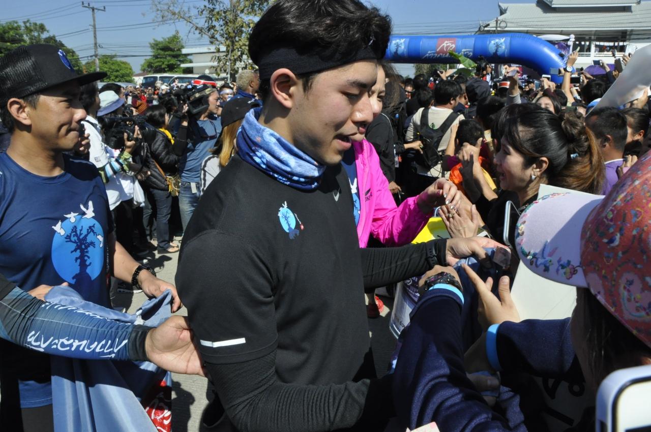 เวลา 11.10 น. ผอ.รพ.เชียงรายประชานุเคราะห์ พร้อมทีมแพทย์พยาบาล สนง.จ.เชียงราย พยาบาลฝึกหัด คณะพยาบาลศาสตร์ วิทยาลัยพยาบาลเชียงราย ครู นักเรียน ร.ร.ปัญญานุกูล ทหาร ตำรวจ และกลุ่มแม่บ้าน และประชาชนจำนวนนับหมื่นคนรอรับ “ตูน” อยู่บริเวณด้านหน้าวัดร่องขุ่นตั้งแต่สามแยกปากทางเข้าวัดร่องขุ่นจนถึงวัด เนื่องจากมีคณะบุคคลและชาวบ้านได้มาตั้งแถวรอต้อนรับ “ตูน” จนล้นบริเวณวัด จึงต้องจัดรับตูนอยู่ด้านนอกวัด และทำให้ต้องปิดบริการนักท่องเที่ยว
