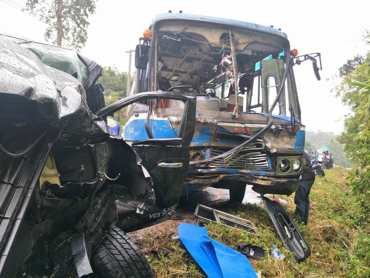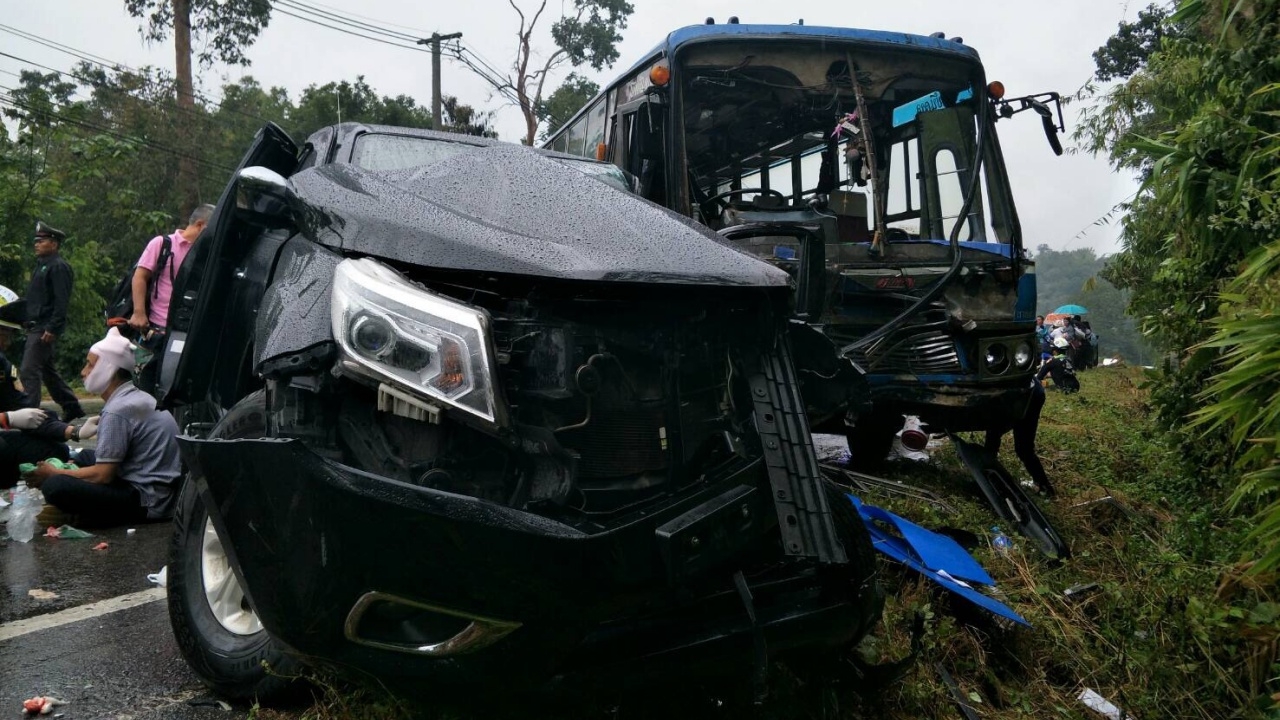 ถนนลื่น คนขับกระบะคุมรถไม่ได้ หมุนชนรถเมล์สายแม่ขะจาน-เชียงราย ที่วิ่งสวนทางมาอย่างแรง เจ็บอื้อ ...