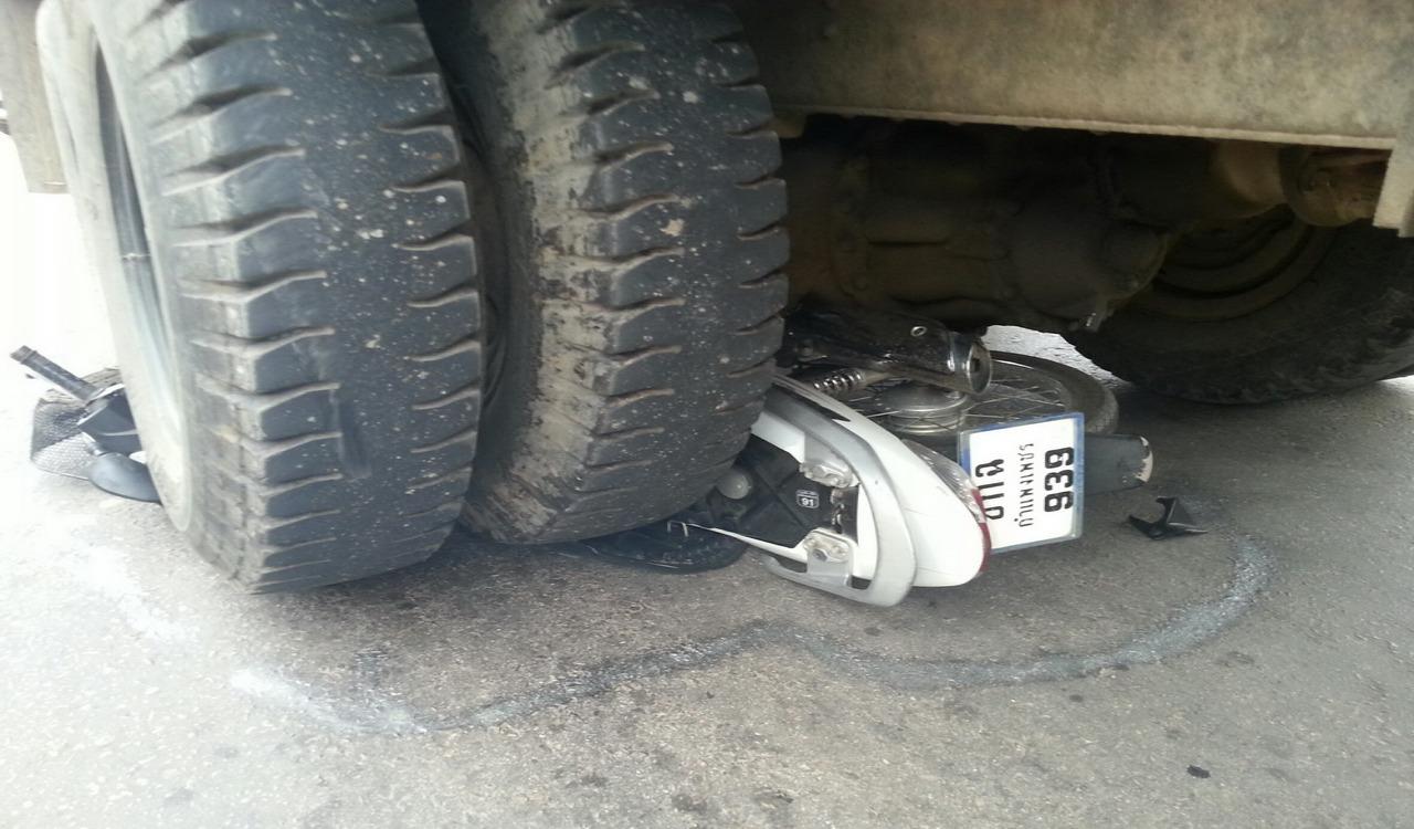 เริ่มแล้วฤดูอุบัติเหตุจากการขนอ้อย รถพ่วงกลับจากส่งอ้อยโรงงานเฉี่ยวชนจักรยานยนต์ เหยียบเละทั้งรถทั้งคนขับ