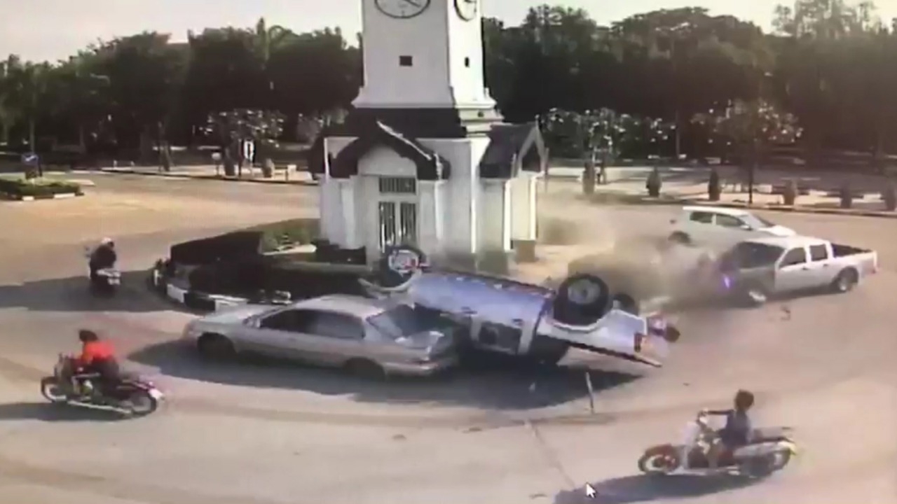 อดีตข้าราชการบำนาญ ขับกระบะพุ่งชนรถ 5 คันรวด ที่ห้าแยกหอนาฬิกาที่ลำปาง คาดคนขับโรคกล้ามเนื้ออ่อนแรงกำเริบกะทันหันทำให้บังคับรถไม่อยู่ เจ็บ 3 ราย...
