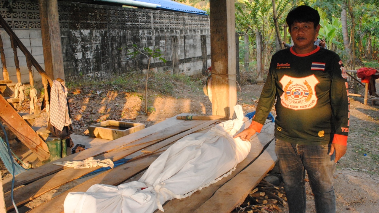 ที่เกิดเหตุเป็นบ้านไม้ชั้นเดียว มีใต้ถุนยกพื้นสูง 2 เมตร บริเวณใต้ถุนบ้านพบศพ นายแทน มิดชิด อายุ 69 ปี นอนคว่ำหน้าจมกองเลือดสภาพศพถูกฟันเข้าที่บริเวณท้ายทอยหลังด้านขวา ยาวถึงกกหูขวา และบริเวณต้นคออีก 2 แผล สวมเสื้อกล้ามสีฟ้า สวมกางเกงขาสั้น สีดำ
