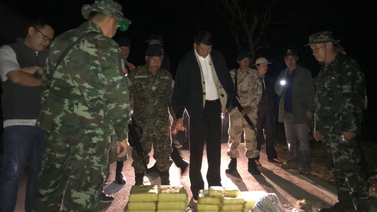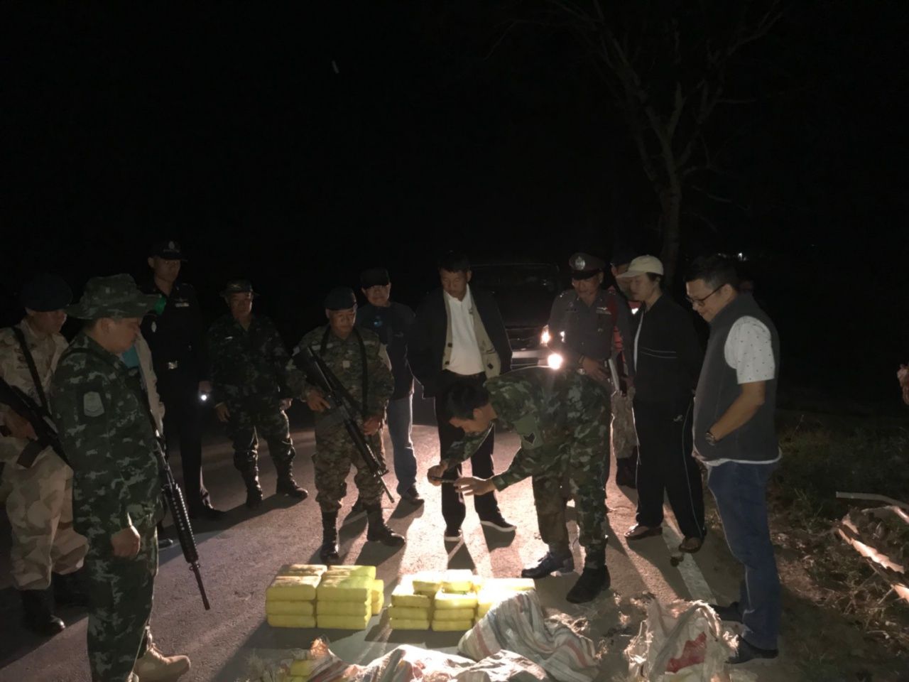 ตรวจสอบภายในบรรจุยาบ้าห่อสีน้ำตาล หน้าห่อประทับตรา 999 จำนวน 34 มัด รวม 200,000 เม็ด หน้าห่อประทับตรา Y 1 จำนวน 37 มัด รวม 330,000 เม็ด รวมยาบ้าทั้งหมด 530,000 เม็ด จึงยึดไว้เป็นของกลางไปตรวจสอบ และตรึงกำลังไว้ในพื้นที่ เนื่องจากมืดค่ำและอยู่ใกล้ชายแดน เกรงจะไม่ปลอดภัย จนกว่าจะรุ่งเช้าฟ้าสว่าง จึงจะเข้าเคลียร์พื้นที่ตรวจสอบอย่างละเอียดอีกครั้ง และรวบรวมพยานหลักฐานติดตามจับกุมขบวนการค้ายาเสพติดรายนี้มาดำเนินคดีต่อไป.