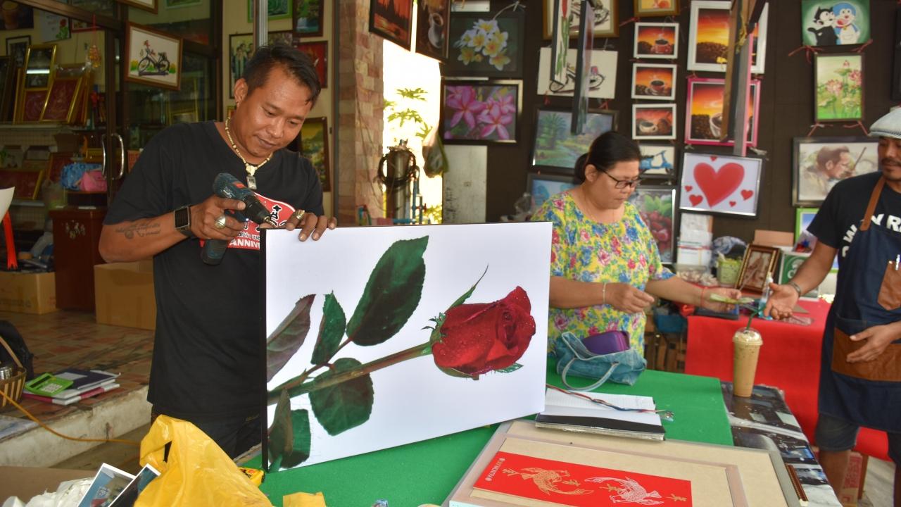น.ส.อรทัย ปลื้มใจ อายุ 44 ปี เจ้าของร้านกรอบ ABC สี่แยกบ้านแขก เปิดเผยว่า ปีนี้ทางร้านเร่งผลิตกรอบรูปดอกกุหลาบหลากหลายรูปแบบ หลังจากมีลูกค้าให้ความสนใจซื้อกรอบรูปดอกกุหลาบกันเป็นจำนวนมากในทุกๆ ปีที่ผ่านมา เนื่องจากมีราคาถูกใกล้เคียงกับดอกกุหลาบสด แต่มีความสวยงามคงทนกว่า ซึ่งคนรักที่ใช้ชีวิตอยู่ร่วมกันแล้ว จะนิยมมาซื้อ เพื่อนำไปมอบให้คนรักหรือแฟนสาวแล้วนำไปประดับตกแต่งบ้าน