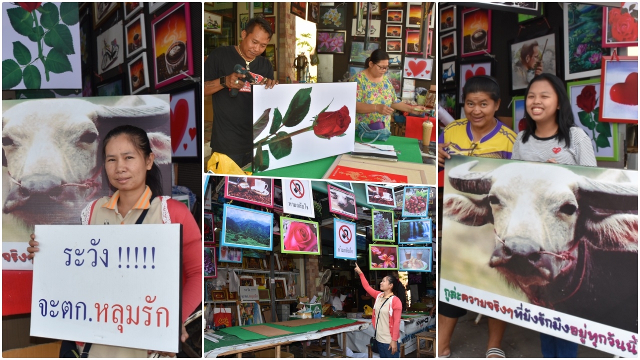 ขณะที่กรอบรูปประชดรักที่เป็นรูปควายมีข้อความบอกคนรัก “กูล่ะควายจริงๆ ที่ยังรักมึงอยู่ทุกวันนี้” ก็ขายดีมากเช่นกัน มีลูกค้ามาสั่งทำหลายชิ้นแล้ว หรือกรอบรูปที่มีเครื่องหมายเขียนตัวหนังสือว่า "ห้ามกลับใจ" และ "ระวัง !!!! จะตก.หลุมรัก" รวมทั้ง "Love" ก็จำหน่ายได้ดีเช่นเดียวกัน สำหรับราคากรอบรูปเริ่มที่ 100-300 บาท นับเป็นทางเลือกให้ลูกค้าที่จะเลือกซื้อสิ่งของให้คนรักในวันแห่งความรักหรือวันวาเลนไทน์ได้ สำหรับลูกค้าที่สนใจจะสั่งกรอบรูปสามารถสั่งซื้อได้ที่หมายเลขโทรศัพท์ 084-6212131