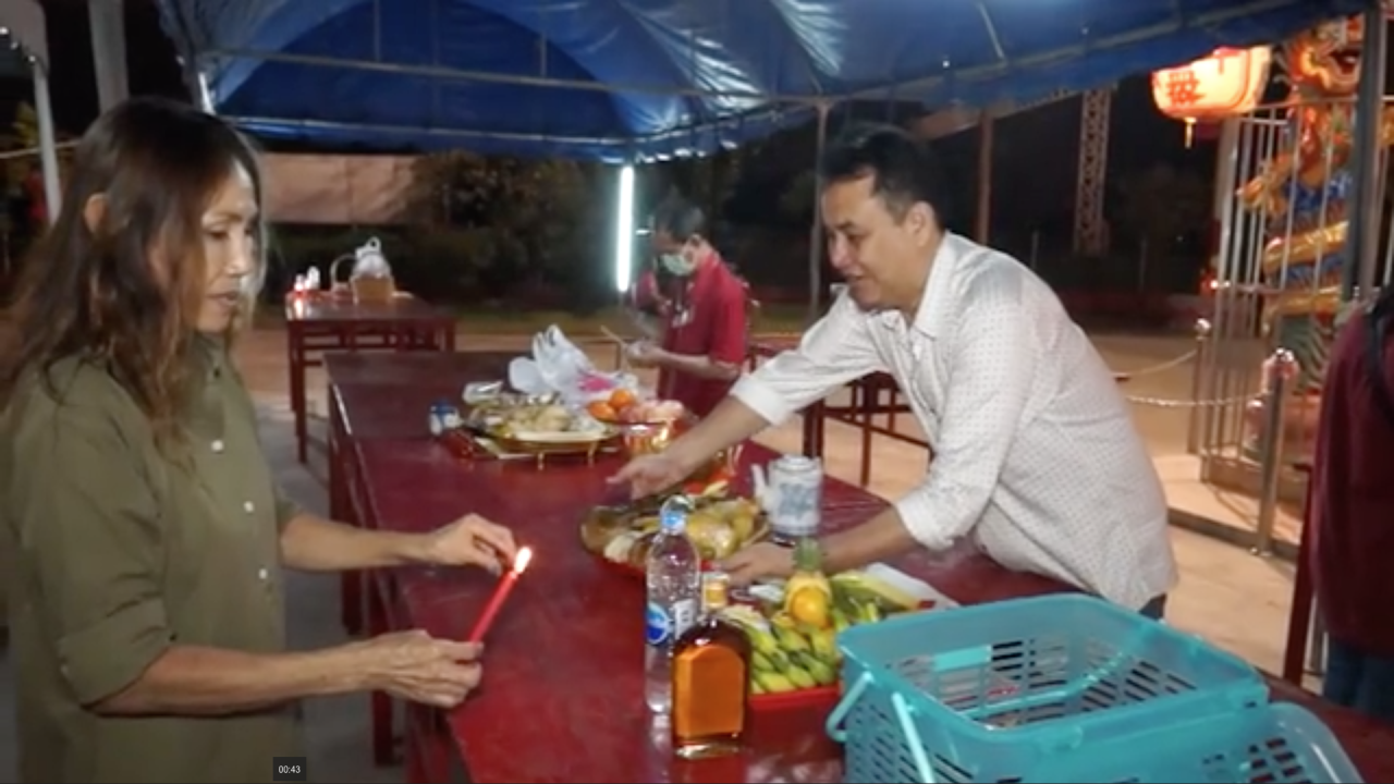 ชาวไทยเชื้อสายจีนจังหวัดกำแพงเพชร เดินทางกันไปที่ศาลเจ้าพ่อเสือ ปึงเถ่ากงม่า นำสิ่งของไหว้เจ้าต่างๆ เช่น หมู เป็ด ไก่ ผลไม้ 5 อย่าง กระดาษเงินกระดาษทอง ถูกจัดมาไหว้กันเต็มโต๊ะ ไหว้เทพเจ้าอธิษฐานขอพร ขอให้กิจการค้าขายต่างๆ ให้มีความเจริญรุ่งเรือง และขอให้ครอบครัวมีความร่มเย็นเป็นสุข และตลอดทั้งคืนที่ผ่านมาจนถึงรุ่งเช้า ทำให้บริเวณศาลเจ้าต่างๆ มีเสียงดังสนั่นของประทัด และชาวไทยเชื้อสายจีนที่เดินทางมาไหว้เจ้า