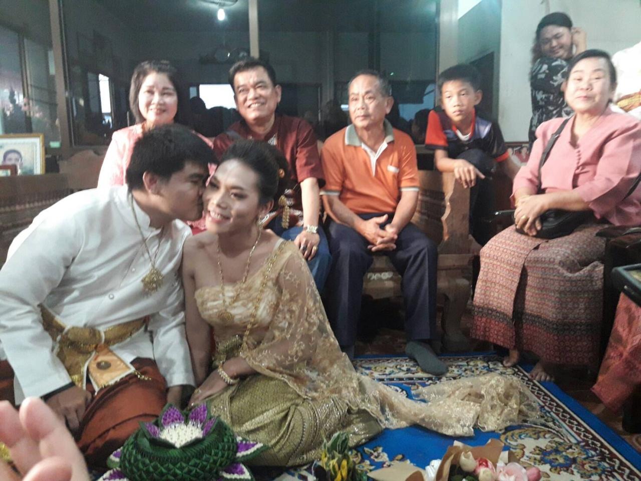 นายเกียรติศักดิ์ เจ้าบ่าว อายุ 31 ปี เปิดเผยว่า ตนเองเป็นคนในเมืองเชียงใหม่ เจอกับเจ้าสาวครั้งแรกในโซเชียล โปรแกรมบีทอล์ก ก่อนนัดเจอกัน และเกิดความประทับใจขึ้น กระทั่งคบหากันเรื่อยมา โดยที่พ่อแม่ของตนก็ไม่ได้กีดกัน กระทั่งตนขอแต่งงานและมีการจัดพิธีมงคลสมรสขึ้น ซึ่งเป็นการจัดตามประเพณีทุกอย่าง ทั้งขบวนแห่ขันหมาก ผูกข้อไม้ข้อมือ และส่งตัวเจ้าบ่าวเจ้าสาวเข้าหอ ภายในงานมีวงดนตรีประโคมตลอดงาน ส่วนสินสอด เป็นเงินสด 50,000 บาท และทองรูปพรรณ 5 บาท
