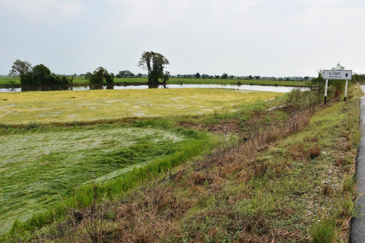 นอกจากนี้ ต้นข้าวของชาวบ้านตระแบกงาม บ้านวังแร่ บ้านบางบ้า ต.ชุมแสงสงคราม จำนวนหลายร้อยไร่ที่สามารถเก็บเกี่ยวได้แล้ว ก็ถูกฝนกระหน่ำจนล้มแทบทั้งแปลง และมีน้ำท่วมขังอยู่ ชาวนาต้องหาเครื่องสูบน้ำมาสูบน้ำออกจากแปลงนาลงไปในคลองกล่ำและคลองเกตุเป็นการเร่งด่วน ด้วยหวังว่าหากน้ำแห้งแล้วต้นข้าวอาจฟื้นคืนตั้งตัวขึ้นมา หรือหากไม่ตั้งตัวก็ยังสามารถที่จะเก็บเกี่ยวผลผลิตได้ ส่วนต้นข้าวที่กำลังตั้งท้องออกรวงที่ถูกกระแสลมพัดจนล้มคาดว่าจะไม่ได้รับความเสียหายมากนัก ขณะนี้ทางกำนันและผู้ใหญ่บ้านใน ต.ชุมแสงสงคราม และ ต.คุยม่วง อ.บางระกำ ได้เร่งออกสำรวจความเสียหายที่เกิดขึ้น เพื่อจะได้รายงานให้นายอำเภอบางระกำ และผู้ว่าราชการจังหวัดพิษณุโลก ทราบต่อไป