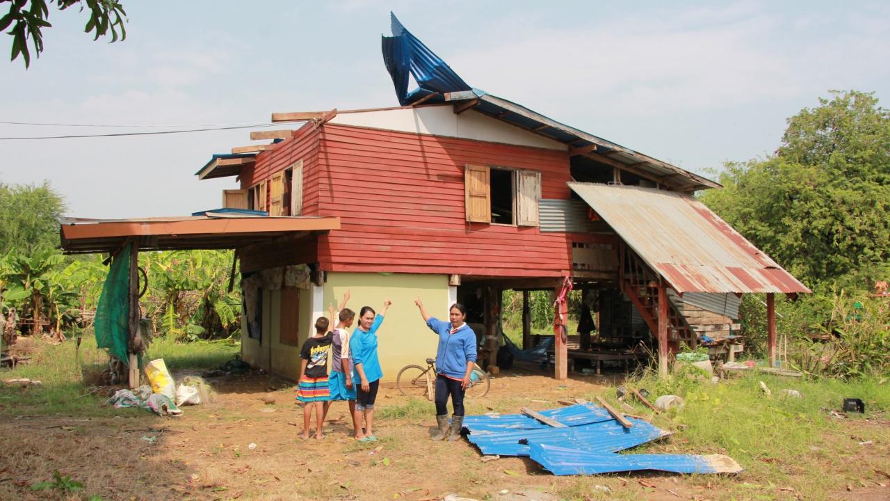 ขณะเดียวกัน แรงลมยังได้พัดเอาหลังคาบ้านเรือนของชาวบ้านเสียหายหลายหลังคาเรือน โดยที่บ้านของ นางจำปี อ่วมอำภา อายุ 47 ปี เลขที่ 116/3 หมู่ 9 ต.ชุมแสงสงคราม ซึ่งเป็นบ้านไม้ 2 ชั้น ชั้นบนปลูกสร้างด้วยวัสดุไม้และหลังคามุงสังกะสี ถูกลมพัดเอาหลังคาปลิวหายไปทั้งแถบสังกะสีกว่า 20 แผ่น ที่นอน หมอน มุ้ง ข้าวของเครื่องใช้ต่างๆ ภายในบ้านถูกฝนตกใส่เปียกทั้งหมด เบื้องต้น นางจำปี ต้องไปกู้ยืมเงินจากเพื่อนบ้าน จำนวน 5,000 บาท เพื่อนำเป็นค่าแรงให้กับช่างและซื้อสังกะสี ตะปู ไม้แปร เพื่อนำมาซ่อมแซมอย่างเร่งด่วน เนื่องจากเกรงว่าคืนนี้อาจมีพายุฝนตกลงมาซ้ำอีก หากรอให้ทางส่วนราชการมาช่วยเหลือคงล่าช้าแน่นอน นอกจากหลังคาบ้านเสียหายแล้ว ต้นยางอายุกว่า 20 ปี ที่อยู่หลังบ้านก็ถูกลมพัดแบบถอนรากถอนโคนหักโค่นลงมาด้วย แต่โชคยังดีที่ไม่ได้โค่นลงมาทับบ้าน