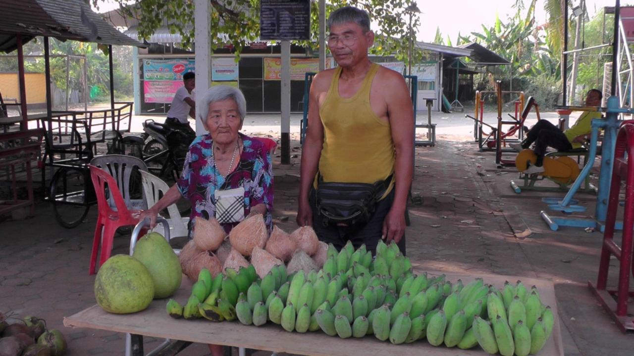 คุณตาสมพร เล่าต่อว่า เหตุนี้เองจึงตัดสินใจไปซื้อกล้วยและมะพร้าวมาขายที่หน้าศูนย์หมู่บ้านทุกวัน ซึ่งรายได้ก็ไม่แน่นอน บางวันก็ได้กำไร 100-200 บาท บางวันก็ไม่ได้สักบาทเลยก็มี แต่อย่างน้อยก็เก็บไว้กินและใช้จ่ายในการไปหาหมอ และทุกวันนี้สามารถทำงานได้แล้ว แต่ยังคงเป็นโรคเบาหวานอยู่ ต้องทานยาและพบหมอตามที่หมอนัด
