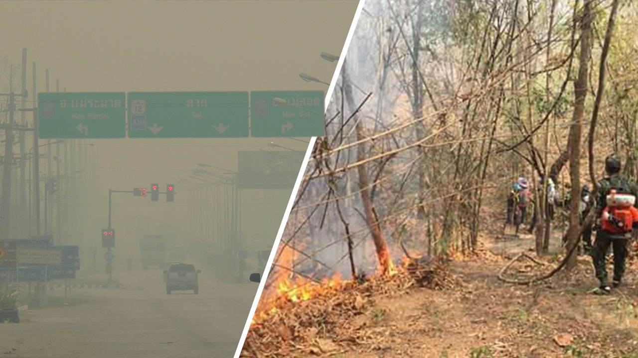 ค่าฝุ่นละอองภาคเหนือยังน่าห่วงหลายจังหวัด ที่แม่สอด ผลพวงจากการเผาป่าฝั่งเมียนมา ทำเครื่องบินลงสนามบินแม่สอดไม่ได้ ขณะที่ลำปาง ยังมีไฟป่าหลายพื้นที่ ซึ่งเกิดจากฝีมือมนุษย์ จับปรับแล้ว 2 ราย