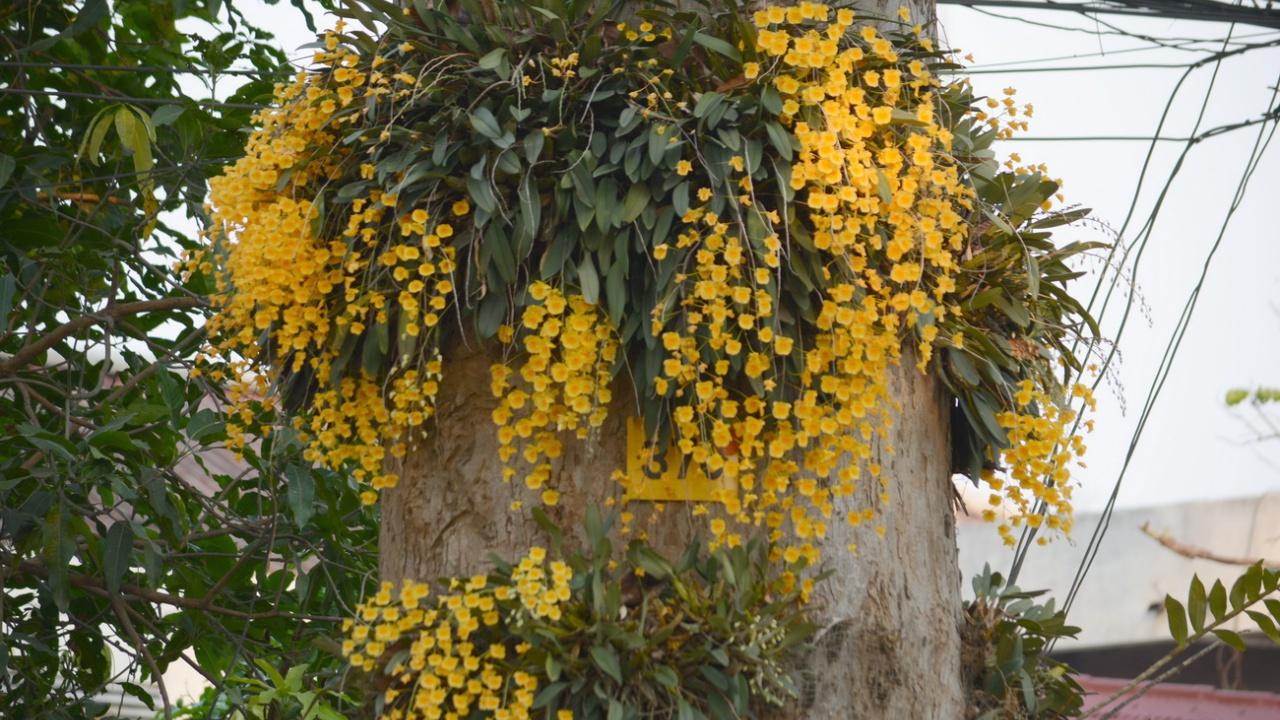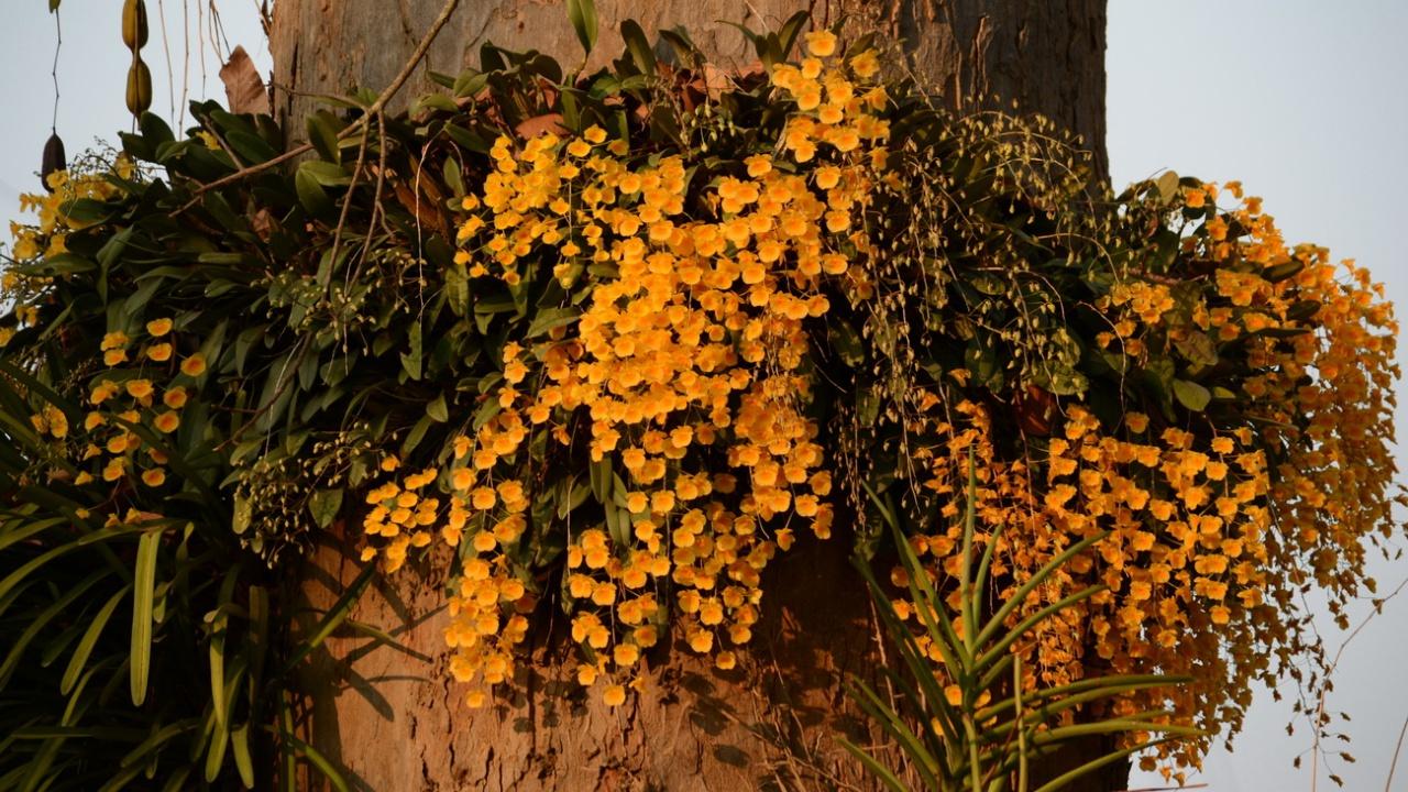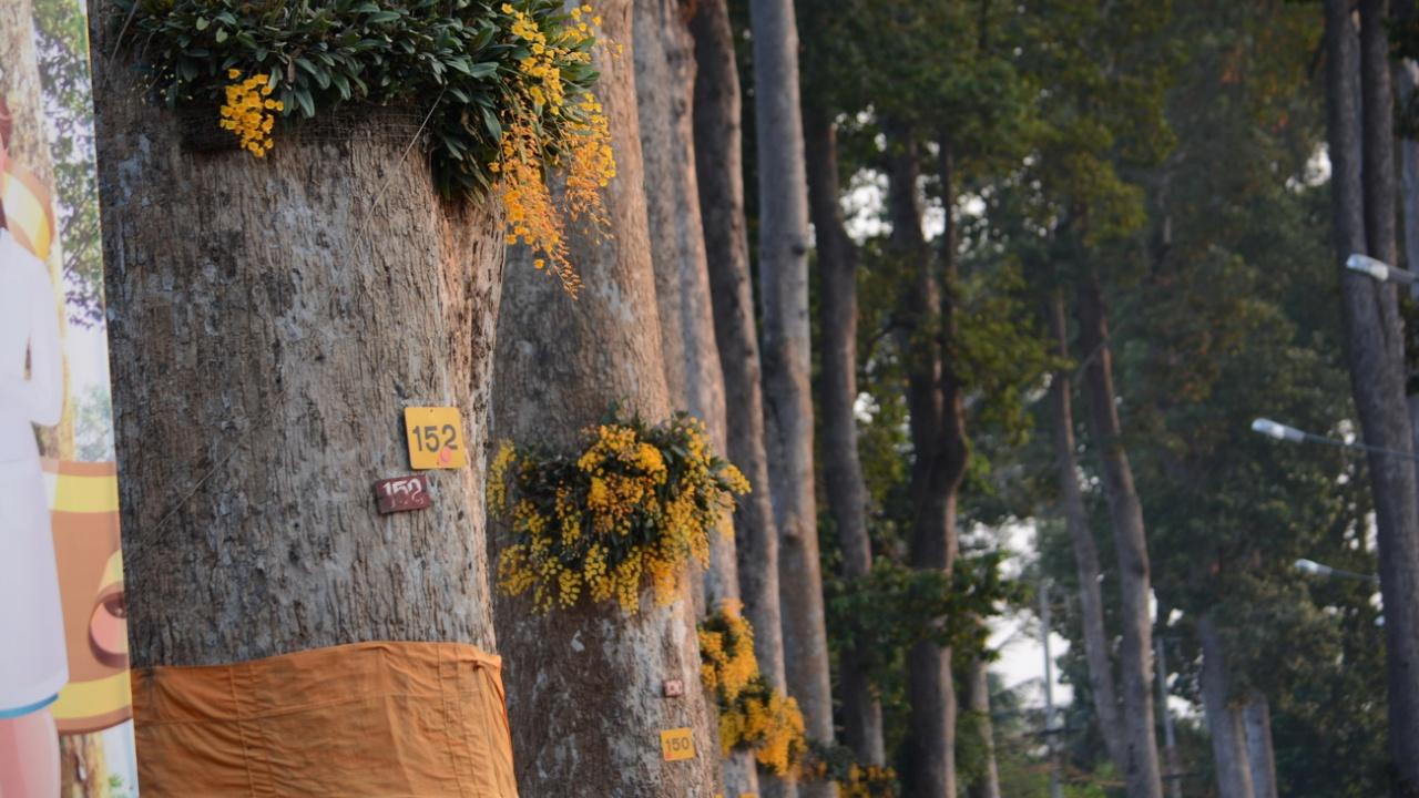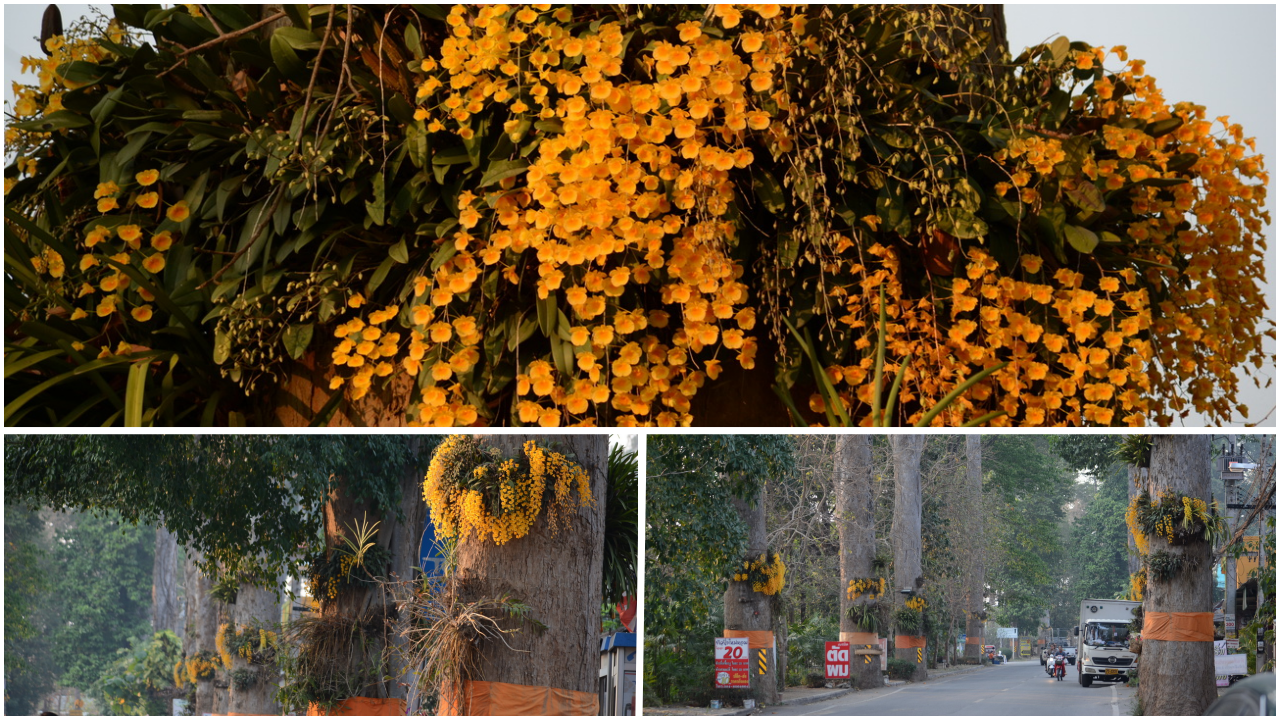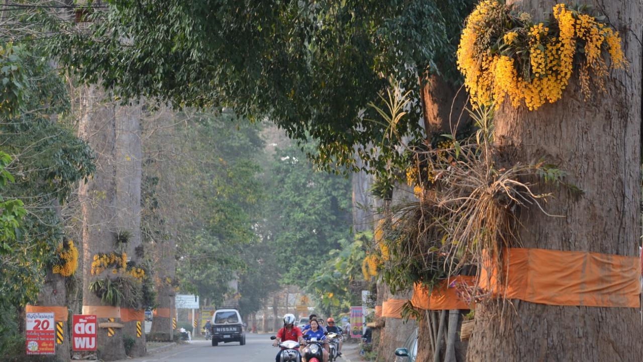 "ดอกเอื้องผึ้ง"เบ่งบาน ต้นยางตำบลสารภี สวยตระการตา ถนนสายเชียงใหม่-ลำพูน ระยะทาง 30 กม. 1 ปีมีครั้งเดียวก่อนสงกรานต์ ถือเป็นถนนที่สวยงามที่สุดของประเทศไทยสายหนึ่ง