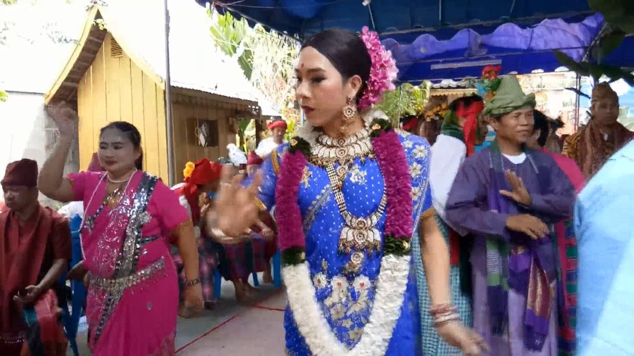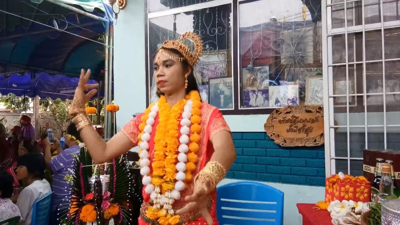 บรรยากาศเลี้ยงผี จะมีบรรดาร่างทรงเจ้าพ่อ เจ้าแม่ ต่างๆ จะมีการร่ายรำกันอย่างมีความสุข ด้วยท่าทางลีลาที่แตกต่างกัน ไปด้วยการแต่งกายด้วยชุดหลากหลายสี ประดับด้วยดอกไม้ และอื่นๆ ได้สร้างความสนใจให้กับผู้เข้าร่วมงาน
