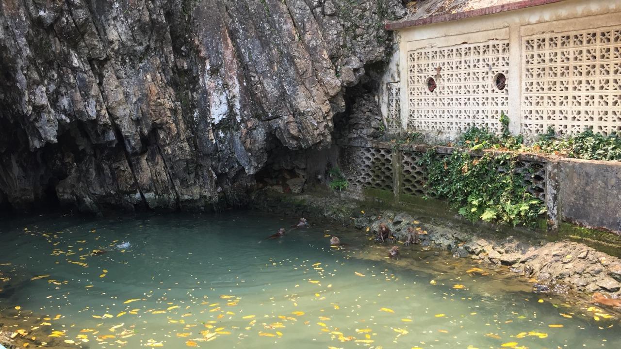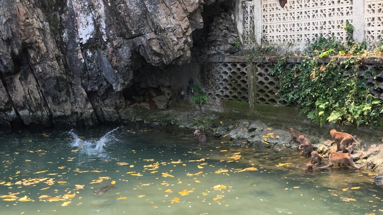 ฝูงลิงทั้งตัวเล็กตัวใหญ่ ได้ออกมาเล่นน้ำแหวกว่ายดำผุดดำโผล่ อย่างสนุกสนาน ลิงวัยรุ่นและตัวเล็กที่มีความซุกซนตามประสาลิง จะเกาะปีนป่ายไต่หน้าผาหินไปถึงกลางลำธารก็จะกระโดดลงน้ำเล่นหมุนเวียนแหวกว่ายไปไต่ขึ้นหน้าผา ก่อนกระโดดลงน้ำใหม่ อย่างสนุกสนานตามประสาลิงอยู่ไม่สุข เป็นภาพที่แปลกตาเพลิดเพลินแก่ผู้พบเห็น โดยเมื่อเล่นจนเหนื่อยและเกิดหิว เหล่าฝูงลิงก็จะเดินมาหานักท่องเที่ยวทั้งคนพื้นที่ จ.เชียงราย และนักท่องเที่ยวต่างจังหวัด ที่ไปเที่ยวพักผ่อนคลายร้อนในบริเวณถ้ำปลา ยื่นมือคอยรับแจกอาหารขนมกินให้อิ่มท้อง เนื่องจากช่วงฤดูแล้งนี้อาหารธรรมชาติลดน้อยลง เริ่มเกิดความอดอยากกินไม่ค่อยอิ่มท้อง
