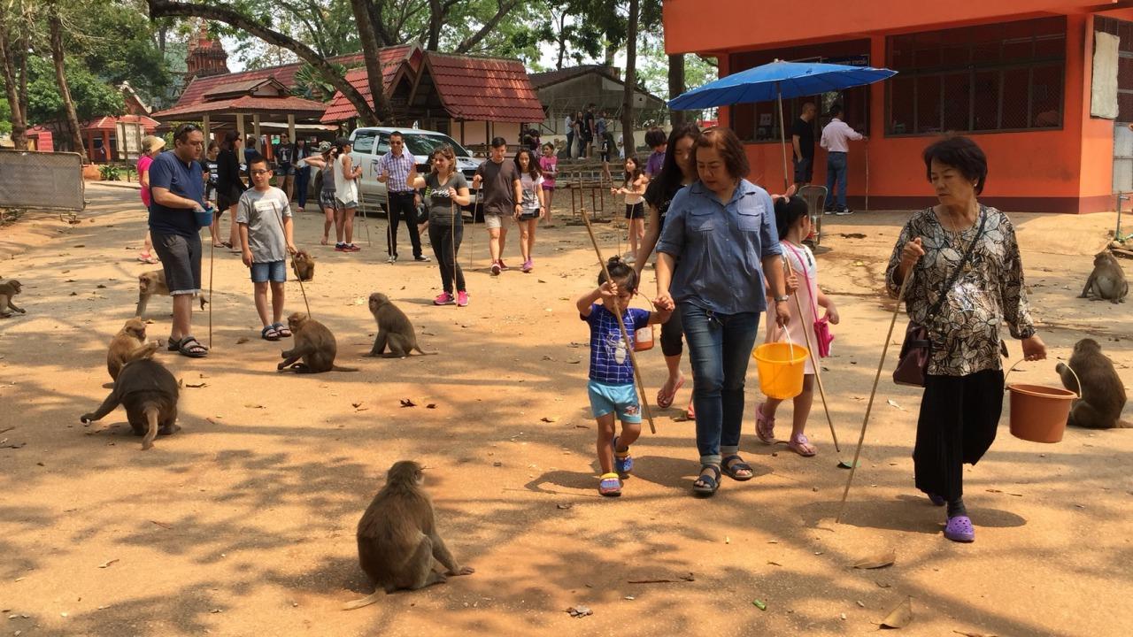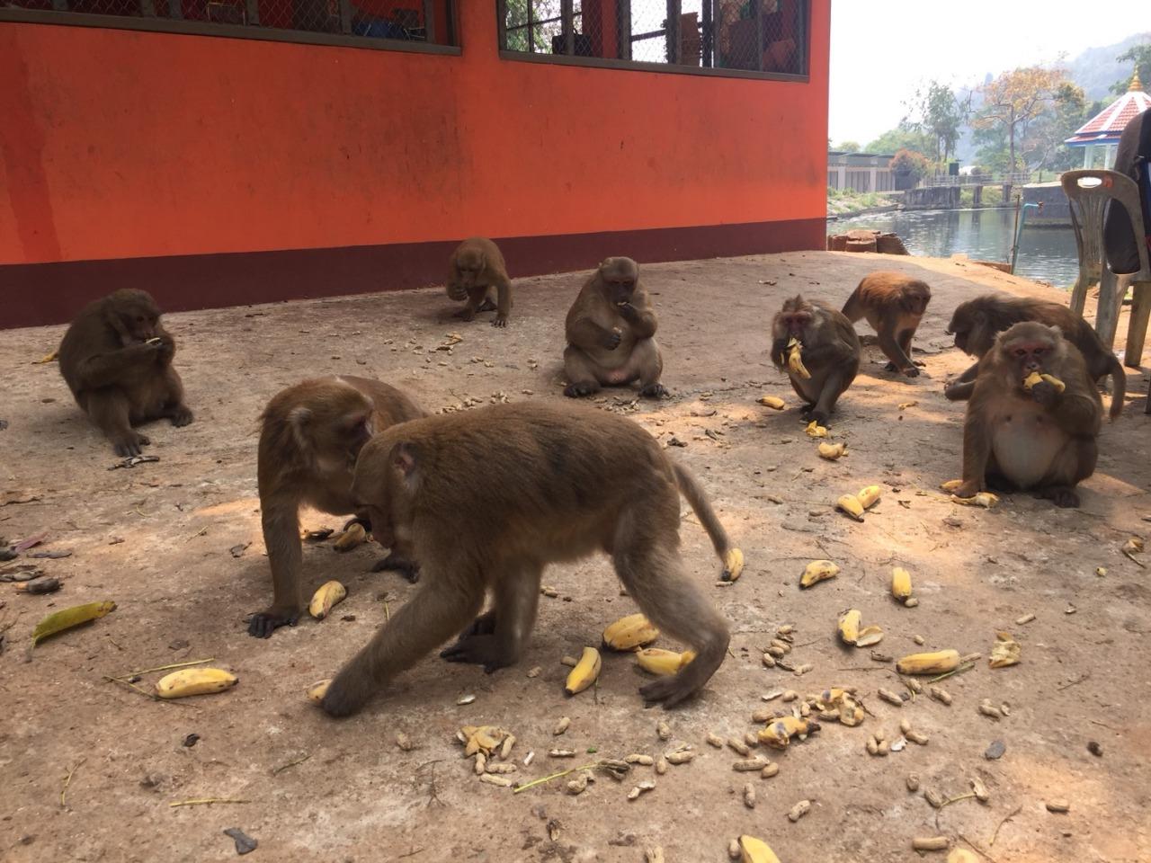 นายณกรณ์ หิรัณถาวรกุล ผู้ดูแลและจำหน่ายอาหารลิงที่วัดถ้ำปลา บอกว่า ที่ถ้ำปลา มีลิงอยู่ 4 ฝูงใหญ่ จำนวนประมาณ 200-300 ตัว ผลัดเปลี่ยนหมุนเวียนกันลงมาเล่นน้ำ กินกล้วยและอาหารที่นักท่องเที่ยวซื้อให้ อยากเชิญชวนนักท่องเที่ยวให้มาเที่ยวกันเยอะๆ มาซื้ออาหารให้ลิง เพราะฤดูแล้งอาหารลิงในธรรมชาติจะขาดแคลน ลิงก็จะลงมาจากภูเขามากขึ้น.