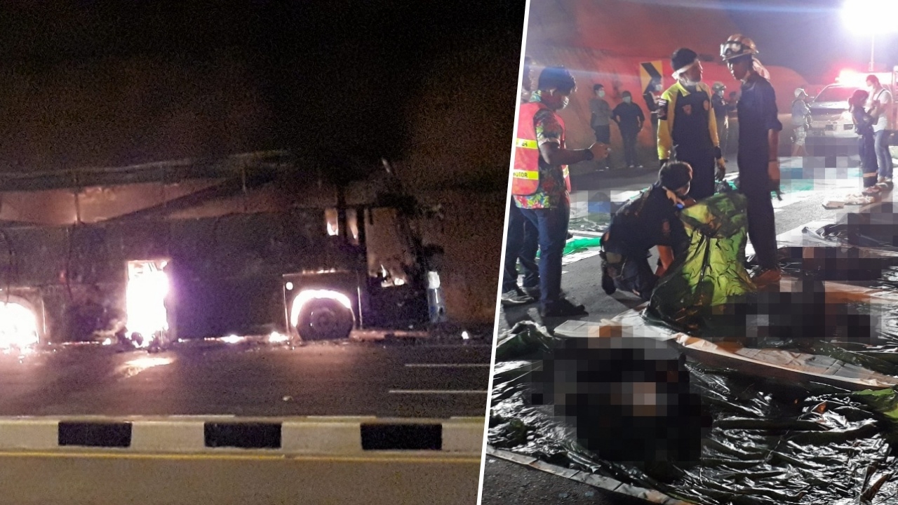 ตาก ระทึก!รถทัวร์โดยสารชาวเมียนมา มาทำบัตรต่อวีซ่าอายุทำงาน เกิดไฟลุกไหม้ท่วมรถ เบื้องต้น ตายคากองเพลิงโดนย่างสด 20 ราย รอดชีวิต 27 ราย บาดเจ็บอีกเพียบ