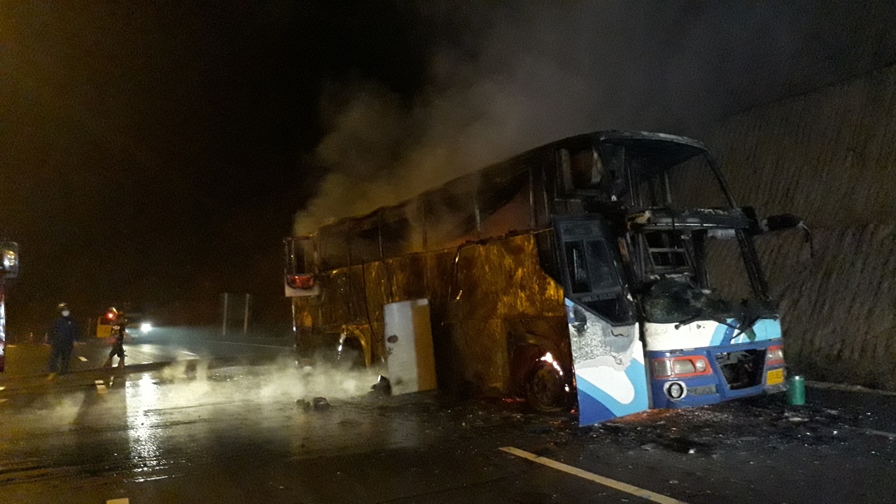 ที่เกิดเหตุพบรถบัสโดยสาร ทะเบียน 10-3824 นครสวรรค์ ชั้นเดียว นายบัญฑูร วิฑูร อายุ 48 ปี เป็นคนขับ สภาพไฟลุกไหม้ได้รับความเสียหายทั้งคัน ที่ประตูกลางรถ ทั้งฝั่งซ้าย ฝั่งขวา และประตู ฉุกเฉินถูกเปิดออก มีศพผู้เสียชีวิตกองรวมกันภายในรถใกล้กับบริเวณประตูรวม 20 ศพ นอกจากนี้ มีผู้หนีออกมาจากรถได้ทันชายหญิงรวม 27 คน โดย 1 ในจำนวนนี้ เป็นหญิงได้รับบาดเจ็บสาหัส ทั้งหมดเป็นแรงงานเมียนมา ผ่านด่านพรมแดนไทยเมียนมา ด้าน อ.แม่สอด จ.ตาก
