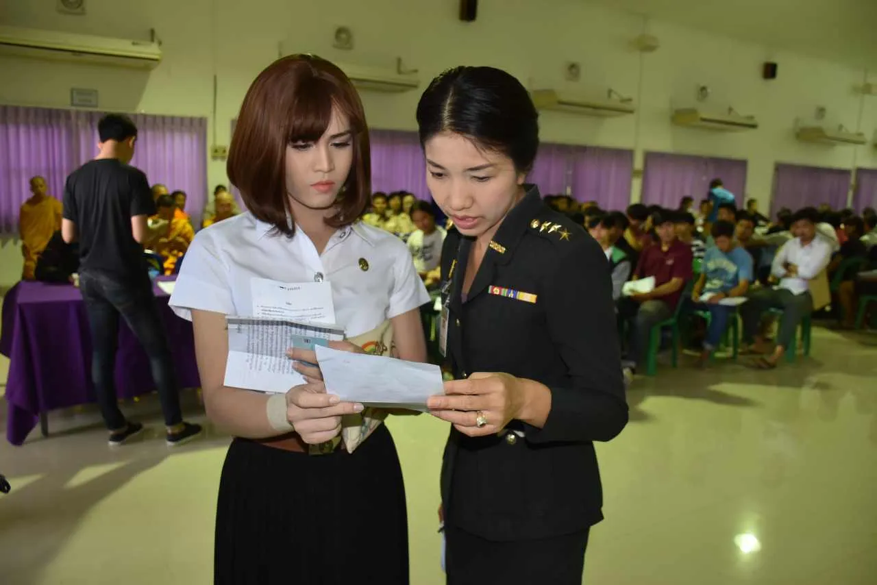 สำหรับบรรยากาศการตรวจคัดเลือกทหารกองเกินของ อ.วัดโบสถ์ ตั้งแต่ช่วงเช้าที่ผ่านมาเป็นไปอย่างคึกคัก ที่ขาดไม่ได้และเป็นสีสันสร้างความฮือฮาให้กับการตรวจคัดเลือกทหารทุกปีคือสาวประเภทสอง โดย นายพิษณุ ปราบพินาศ หรือน้องตั้ว อายุ 24 ปี นักศึกษาชั้นปีที่ 2 สาขาวิชานิเทศศาสตร์ คณะวิทยาการจัดการ มหาวิทยาลัยราชภัฏพิบูลสงคราม ที่แต่งกายมาด้วยชุดนักศึกษารูปร่างหน้าตาผิวพรรณสวยงามไม่แพ้กับผู้หญิงแท้ๆ จนชายหนุ่มที่มาคัดเลือกทหารต่างหันมองกันตาเป็นมัน ทั้งนี้ น้องตั้วได้มาขอยื่นผ่อนผันเป็นครั้งที่ 4 เนื่องจากยังอยู่ระหว่างเรียนหนังสือ พร้อมกับนำใบรับรองแพทย์มายื่นด้วย ซึ่งหากการตรวจร่างกายพบว่าสภาพทางเพศไม่ตรงกับเพศกำเนิด จึงจะได้รับการยกเว้นจากการเกณฑ์ทหาร