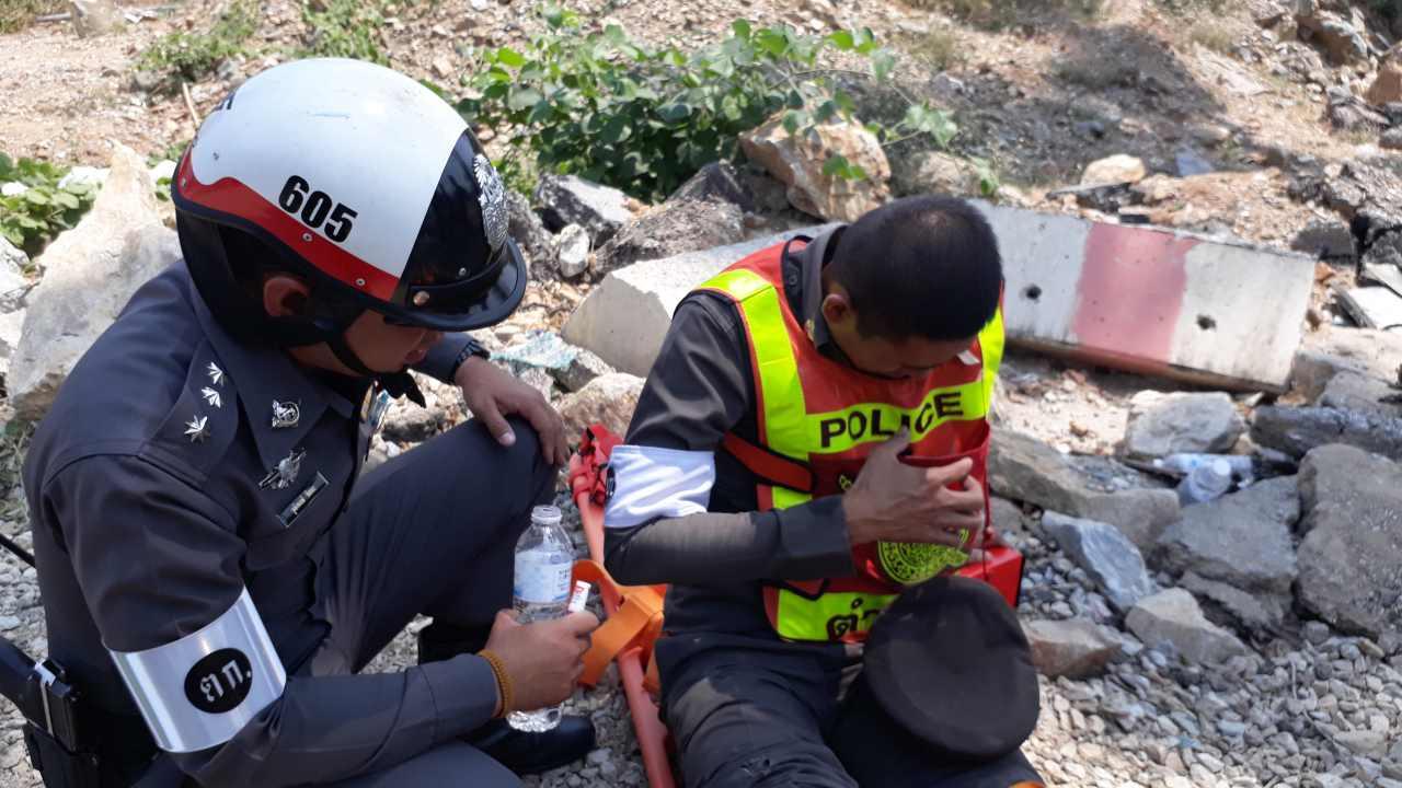 จากนั้น ได้เห็นรถคันนี้พุ่งลงเขาไปตามทาง ชนแบริเออร์ด้านซ้าย และไถลไปชนด้านขวาซึ่งเป็นเกาะกลางถนน หลังฝุ่นสงบ พบว่ามีเจ้าหน้าที่แรงงานหญิงเสียชีวิต และมีเจ้าหน้าที่ตำรวจได้รับบาดเจ็บ ส่วนคนขับรถ ได้รับบาดเจ็บแขนทั้ง 2 ข้างหัก มีแผลฉีกขาด อาการสาหัส เจ้าหน้าที่จึงประสานขอทีมกู้ภัยฯ และแพทย์จาก รพ.สมเด็จพระเจ้าตากสินมหาราช มารับตัวไปทำการรักษา