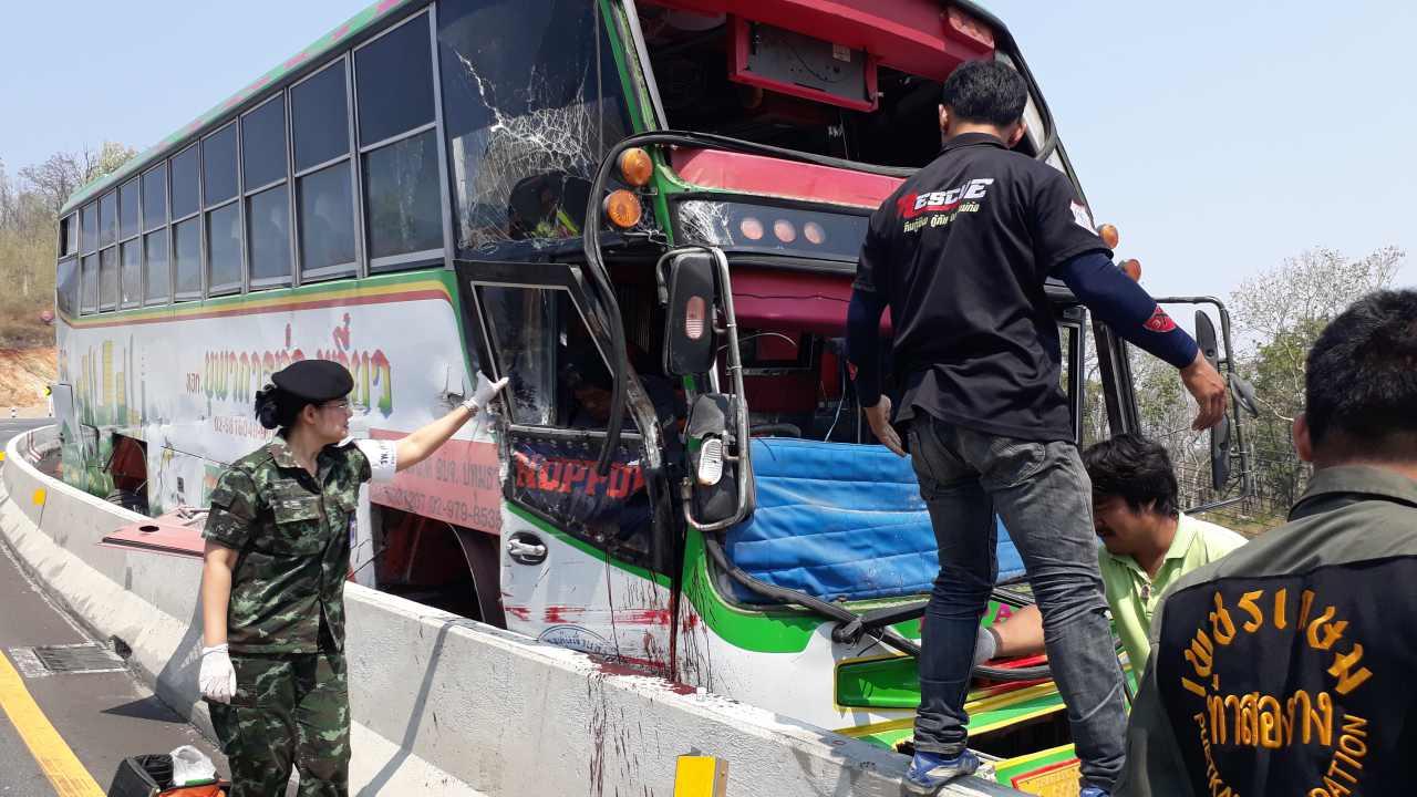 สลดซ้ำ รถบัสขนแรงงานพม่า ลงดอยรวกเบรกแตกกระแทกแบริเออร์ ในที่เดิมที่เพิ่งตกดอยตาย 6 ศพ จนท.กำลังตรวจที่เกิดหนีตายกันระทึก จนท.หญิงแรงงานเคราะห์ร้ายโดนทับตายคาที่