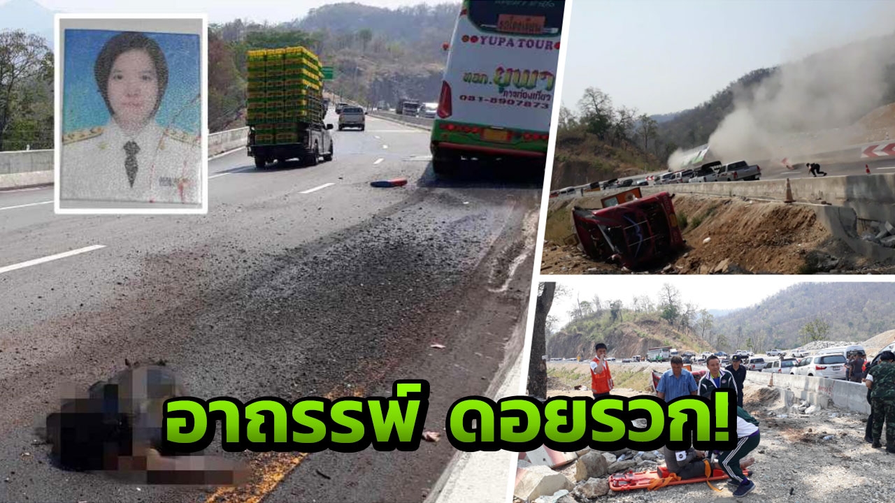 ก่อนที่รถบัส จะพุ่งเข้าชนร่างของนางสาวมานิดา ธัญกิจรุ่งโรจน์ อายุ 37 ปี นักวิชาการแรงงานชำนาญการ ประจำสำนักงานแรงงานจังหวัดตาก ที่พยายามวิ่งหลบไปทางแบริเออร์กลางถนน แต่โชคร้าย ถูกชนบัสชนร่างอัดติดลากไปกับแบริเออร์ เสียชีวิตคาที่อย่างน่าสลดใจ