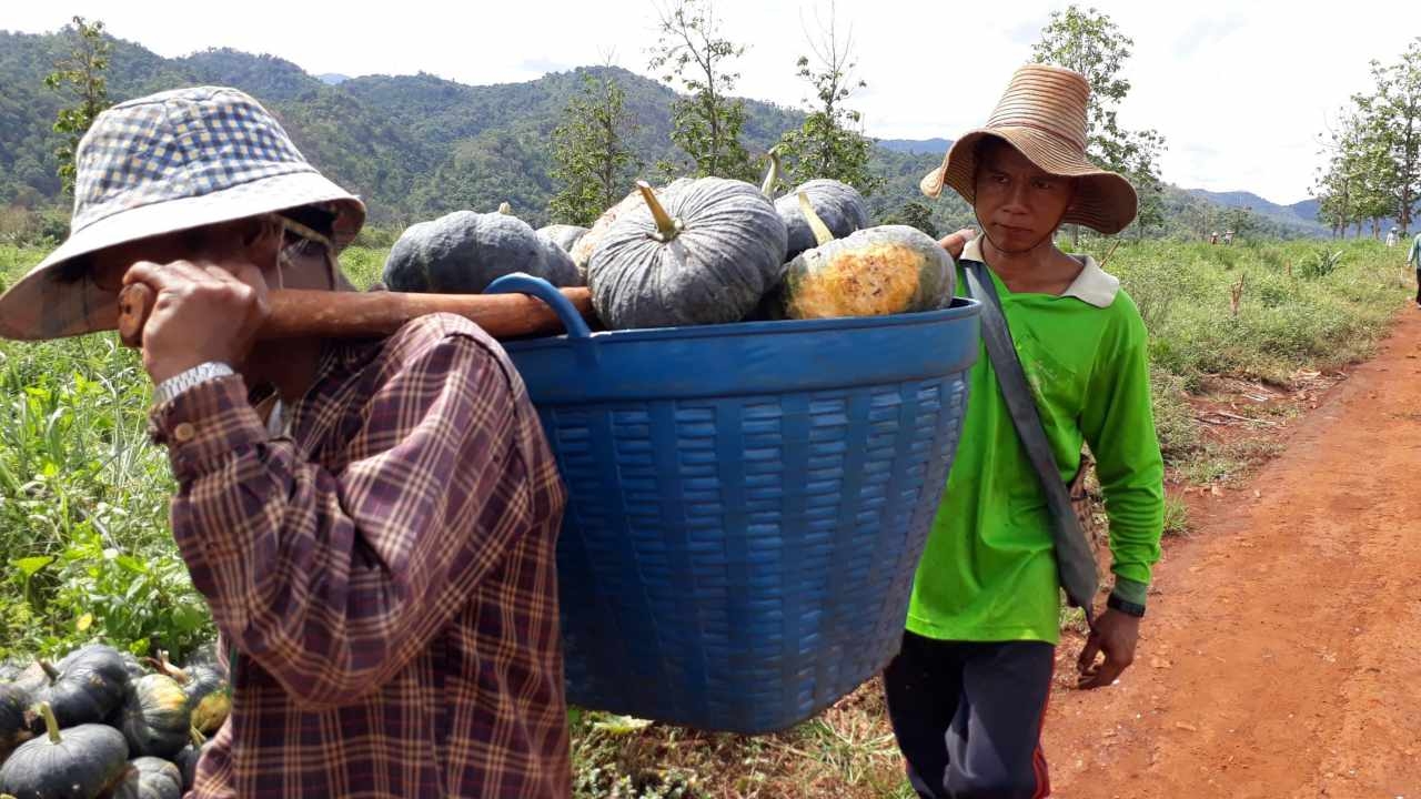 นายสงัด วินนัน อายุ 52 ปี ชาว ต.รวมไทยพัฒนา เปิดเผยว่า ปลูกฟักทองจำนวน 15 ไร่ ช่วงต้นฝนหวังได้ราคาดีในช่วงแล้ง เพื่อนำเงินเป็นค่าเล่าเรียนของบุตร แต่เกิดปัญหาน้ำไม่เพียงพอทำให้ฟักทองไม่ได้ขนาด