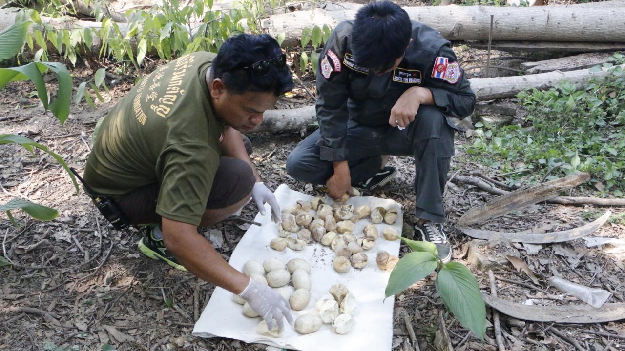 เมื่อหน่วยกู้ภัยเดินทางไปถึง ลองแง้มเปิดสังกะสีออกดูก็พบงูหลามขนาดใหญ่ นอนขดตัวฟักไข่จำนวนมาก จึงรอให้ชุดจับงูเดินทางมาจับ หลังจากนั้นก็ช่วยกันรื้อสังกะสีออก ปรากฏว่างูหลามตัวดังกล่าวเลื้อยหนีไปแล้ว จึงได้ช่วยกันค้นหาภายในโกดัง ส่วนหน่วยกู้ภัยอีกชุดก็ลำเลียงไข่งูหลามออกมาจากรังจำนวนทั้งหมด 60 ฟอง เป็นไข่ที่ยังไม่ฟักตัว 25 ฟอง และไข่ที่ฟักตัวออกไปแล้ว 35 ฟอง พบว่าไข่แต่ละใบมีขนาดใหญ่มาก ส่วนแม่งูหลามตัวดังกล่าวได้เลื้อยลงรูหลบไปอยู่ในห้องใต้ดินของโกดัง จึงได้ใช้อุปกรณ์บ่วงเชือกคล้องคอแม่งูจับออกมาได้