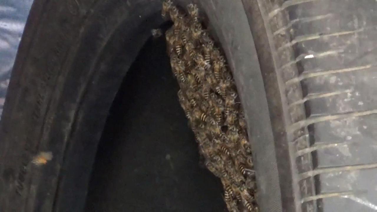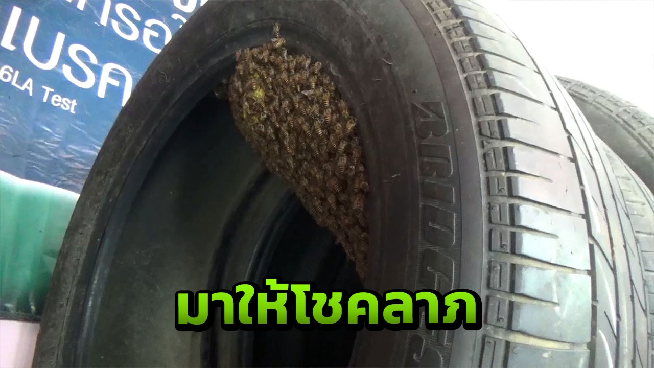 ฮือฮา! ฝูงผึ้งขออยู่ด้วย ยึดยางรถยนต์เป็นที่ทำรัง ในอู่ซ่อมรถร้านยางที่พะเยา เจ้าของอู่บอก ผึ้งรังนี้ไม่เคยทำร้ายใคร ทั้งคนมาซ่อมรถและคนในอู่ เชื่อมาให้โชคลาภ ทำให้กิจการเจริญรุ่งเรือง...
