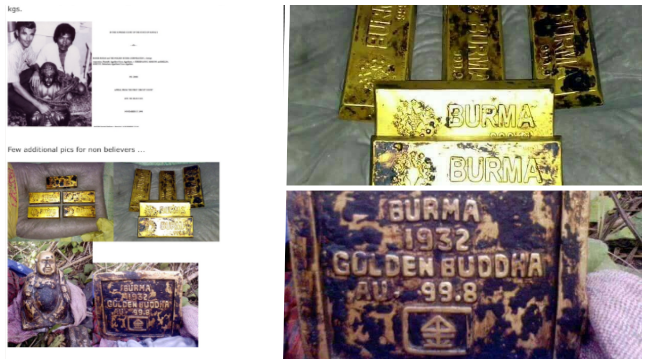ขณะที่นายโบวิน ผู้สื่อข่าวเมียนมาประจำรัฐมอญ อ้างว่า เมียนมาได้ขุดเจอขุมทองคำแท่งถึง 2 ครั้งในเขตรัฐมอญของเมียนมา ครั้งแรกในสมัยสมัยนายพลเนวินผู้นำทางทหาร ราว 25 ปี ที่ผ่านมา และครั้งนี้ขุดพบโดยบริษัทของชาวเมียนมา หลังจากฝนตกหนักระหว่างการย้ายดินภูเขาเพื่อก่อสร้างถนน แต่เรื่องนี้เกิดขึ้นนานพอสมควรแล้ว และทางการเมียนมาสั่งชะลอการก่อสร้างของบริษัทดังกล่าว จากปัญหาทองคำสงครามโลกนี้เอง