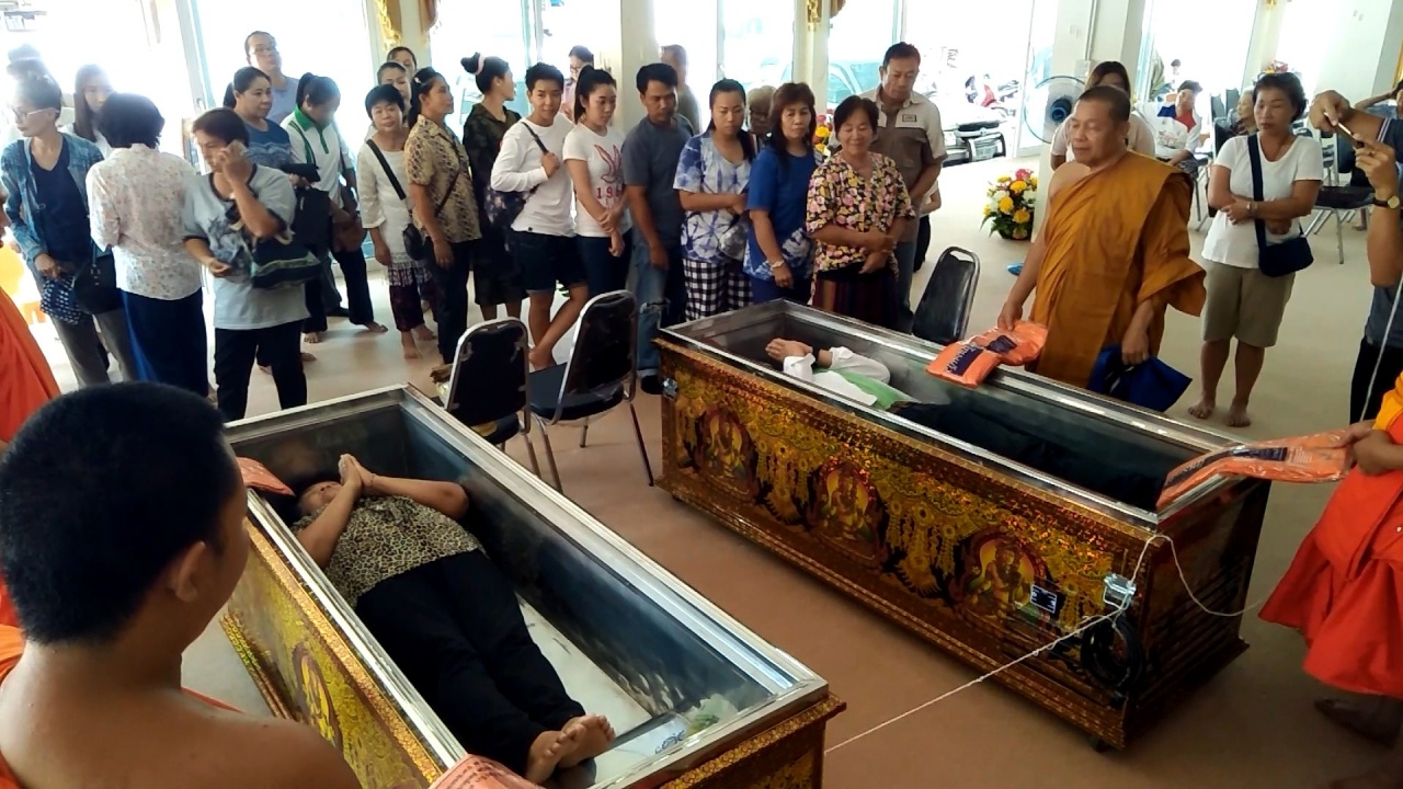 ชาวบ้านบริจาคโลงศพติกอร์ให้วัดที่พะเยา ใช้สาธาณะประโยชน์ พร้อมทำพิธีสะเดาะเคราะห์ นอนในโลง เพื่อให้พระสวดบังสุกุลเป็น บังสุกุตาย หวังล้างสิ่งอัปมงคล ต่อชีวิต ...