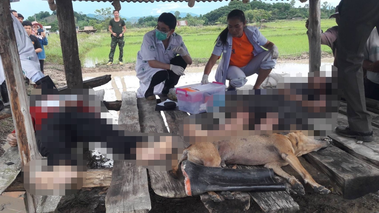 จากการสอบสวนญาติผู้ตายทราบว่า ก่อนเกิดเหตุคนทั้ง 2 ได้ออกจากบ้านไปทำนา จากนั้นเมื่อเวลาประมาณ 16.00 น.ได้เกิดฝนตกหนัก ทำให้ผู้ตายได้เข้าไปพักหลบฝนภายในกระท่อมที่มีน้ำท่วมนา และเกิดฟ้าผ่าลงที่กลางกระท่อม ทำให้เสียชีวิตทั้งคู่ และสุนัขที่ไปด้วยตาย 1 ตัว หลังจากฝนหยุดตก ได้เดินมาหาผู้ตาย พบว่าเสียชีวิตไปแล้ว และญาติไม่ติดใจสาเหตุการเสียชีวิต เจ้าหน้าที่จึงมอบศพให้ญาติไปบำเพ็ญกุศลตามพิธีศาสนาต่อไป.