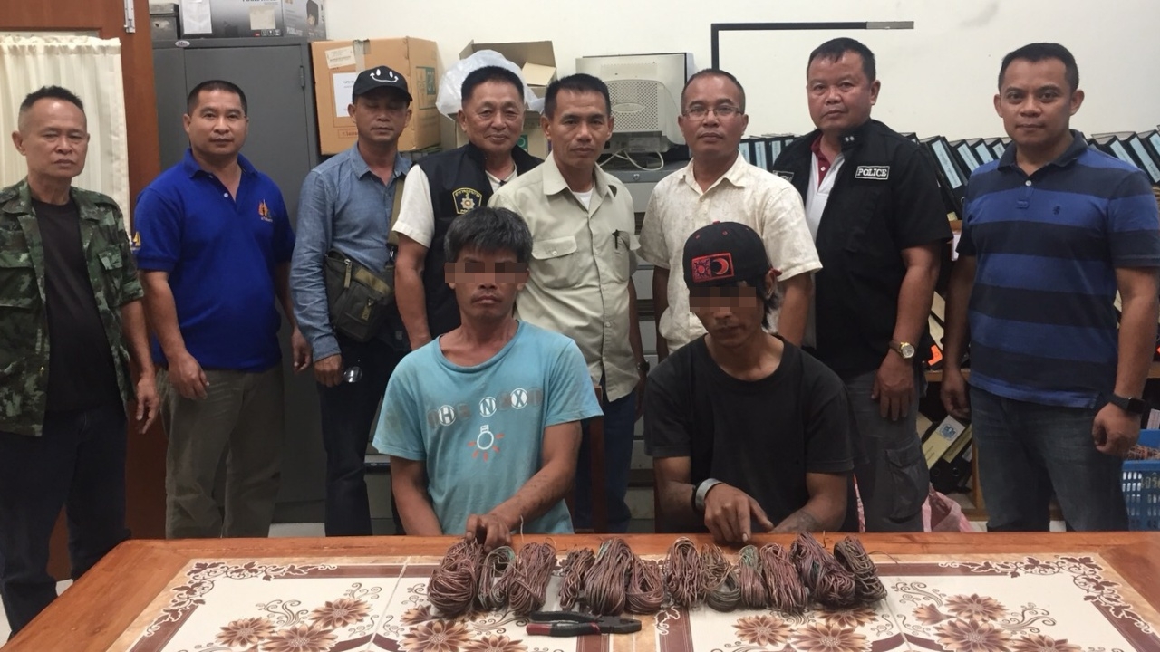 เมื่อเวลา 00.30 น. วันที่ 19 มิ.ย. 61 พ.ต.ท.อำนาจ จะวะนะ สว.สส. สภ.แม่ทา จ.ลำพูน พร้อมด้วย ร.ต.อ.วิทยา ใจคำ รอง สว.สส.สภ.แม่ทา จ.ลำพูน ร่วมกับ ตำรวจชุดสืบสวน สภ.ทากาศ จ.ลำพูน นำโดย พ.ต.ท.กรดล ยศอินต๊ะ สว.สส.สภ.ทากาศ จ.ลำพูน ได้ร่วมกันจับกุม นายสุชาติ จะงะ อายุ 27 ปี ที่อยู่ 175 หมู่ที่ 14 ต.วาวี อ.แม่สรวย จ.เชียงราย และนายคำปัน ลุงเสา สัญชาติเมียนมา อายุ 36 ปี พร้อมของกลาง ลวดทองแดงจำนวน 12 ก้อน น้ำหนักรวมประมาณ 10 กิโลกรัม คีมตัดลวดสีแดง พันด้วยหนังสีดำ จำนวน 1 ด้าม รถจักรยานยนต์ ยี่ห้อฮอนด้า รุ่น ซุปเปอร์ 70 สีเปลือกมังคุด ไม่ติดแผ่นป้ายทะเบียน จำนวน 1 คัน เบื้องต้นแจ้งข้อหา “ร่วมกันลักทรัพย์ที่ใช้หรือมีไว้เพื่อสาธารณประโยชน์โดยใช้ยานพาหนะเพื่อสะดวกแก่การกระทำผิดหรือเพื่อพาทรัพย์นั้นไป หรือรับของโจร” หลังแจ้งข้อหา ทั้งสองคนให้การรับสารภาพ เหตุเกิดที่แทงก์น้ำประปาสาธารณะของหมู่บ้าน หมู่ที่ 14 บ้านสบสะป๊วด ต.ทาสบเส้า อ.แม่ทา จ.ลำพูน