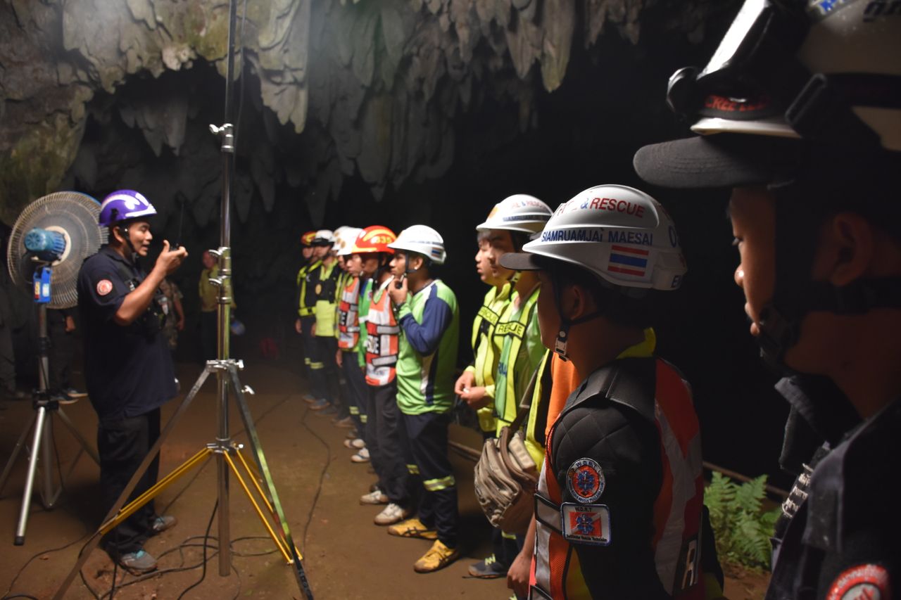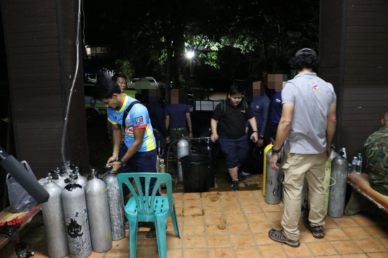 ส่วนด้านนอกถ้ำที่บริเวณกองอำนวยการมีเจ้าหน้าที่กู้ภัยและทหารช่วยกันบรรจุถังออกซิเจนเพื่อเตรียมความพร้อมไว้ให้กับทีมประดาน้ำที่จะได้ใช้ตามหาเด็กๆ และโค้ชทีมฟุตบอลในช่วงเช้า.