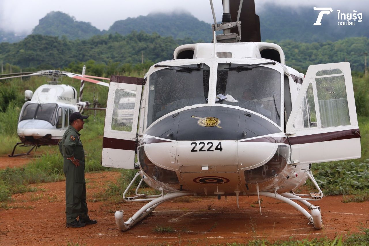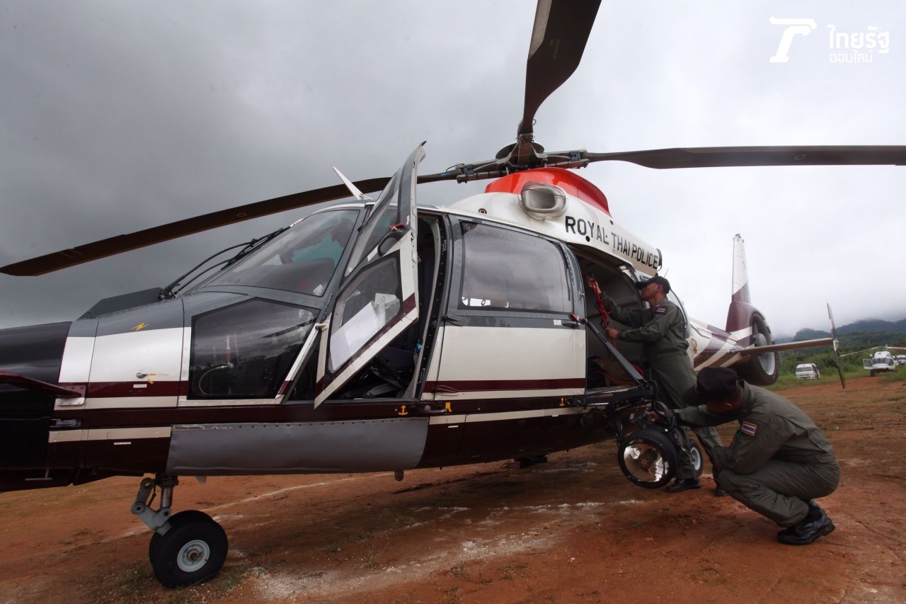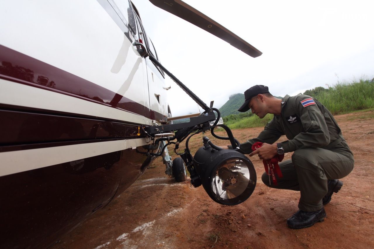 นักบินและเจ้าหน้าที่กู้ภัยสังกัดกองบินตำรวจ สำนักงานตำรวจแห่งชาติ กำลังตรวจความเรียบร้อยของเครื่องบินเฮลิคอปเตอร์ และอุปกรณ์การกู้ภัย เพื่อเตรียมปฏิบัติหน้าที่ช่วยเหลือนักฟุตบอลเยาวชนและโค้ช รวม 13 ชีวิต ที่ติดค้างในถ้ำหลวง-ขุนน้ำนางนอน อ.แม่สาย จ.เชียงราย แนวทางการปฏิบัติได้บินลาดตระเวนตามพื้นที่โดยรอบ ทั้งในเวลากลางวันและกลางคืน สามารถบินถึงจุดหมายพร้อมช่วยเหลือใช้เวลาไม่เกิน 10 นาที เมื่อได้รับคำสั่งและทราบพิกัดอย่างแน่นอน โดยประเภทของเครื่องบินเฮลิคอปเตอร์ที่ใช้ในภารกิจนี้ ประกอบด้วย 1.เฮลิคอปเตอร์กู้ภัยค้นและช่วยเหลือ 2.เฮลิคอปเตอร์พยาบาล 3.เฮลิคอปเตอร์ลำเลียง