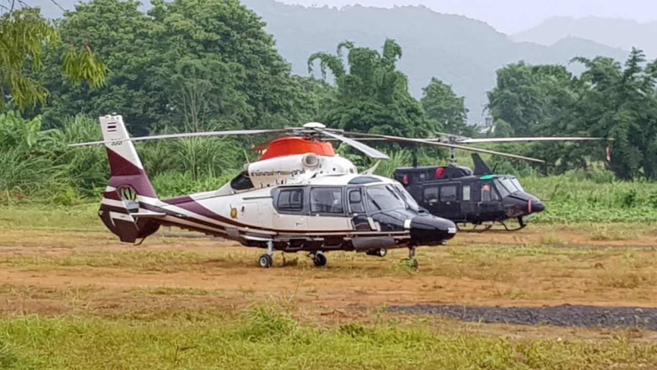 เฮลิคอปเตอร์ของกองบินตำรวจ จอดเตรียมพร้อมห่างถ้ำหลวง 2 กม. เพื่อลำเลียงสมาชิกทีมหมูป่าที่ออกมาจากถ้ำหลวง ส่งรักษาต่อยัง รพ.เชียงรายฯ...