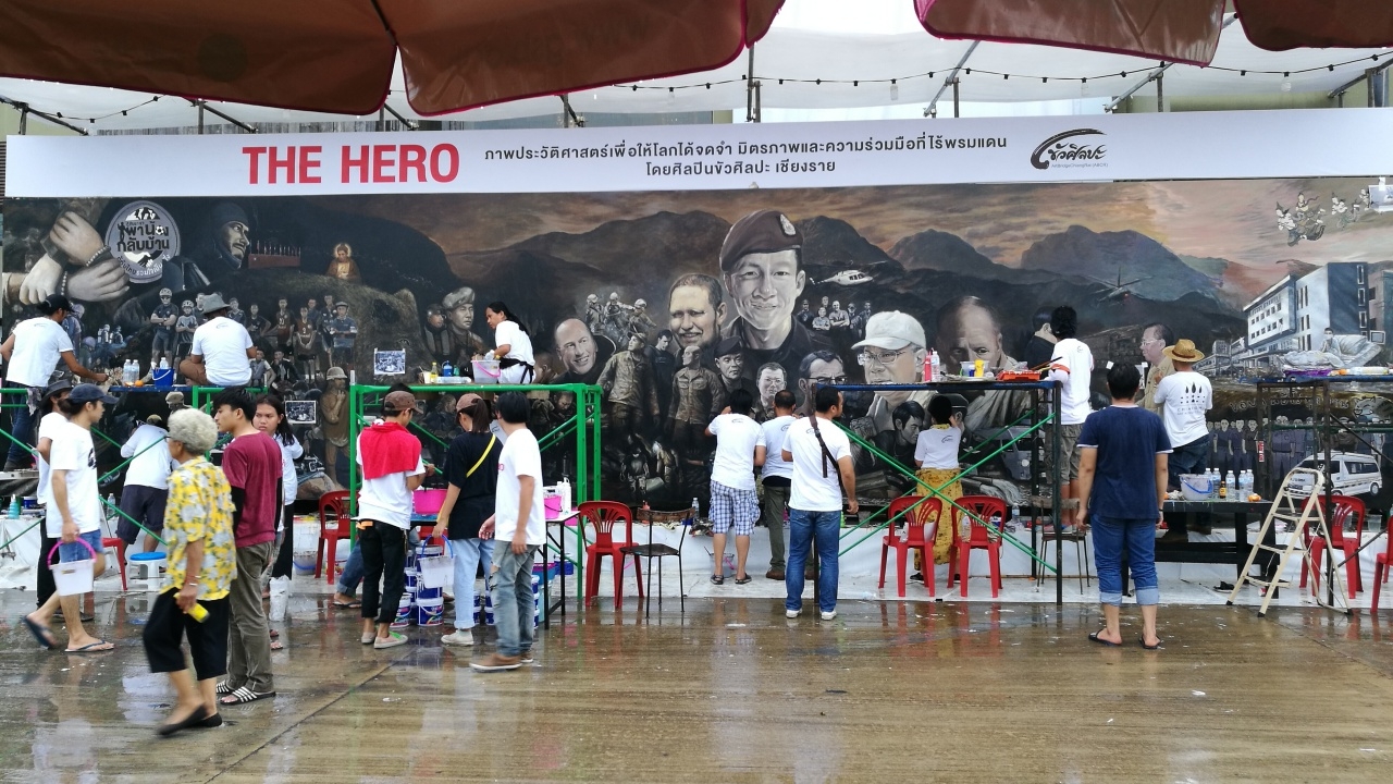 ระดมศิลปินวาดภาพ 'The Hero' วีรบุรุษถ้ำหลวง วันที่ 2 เตือนสติทีมหมูป่าฯ อย่าลืมบุญคุณคนที่ช่วยเหลือ จนรอดชีวิตกลับมา ให้ยึดความกตัญญูเป็นที่ตั้ง ...