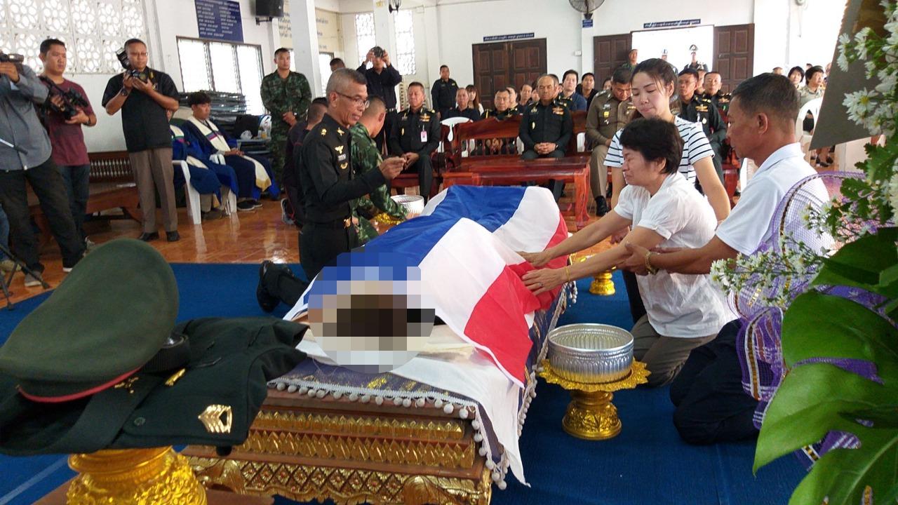 เมื่อเวลา 13.00 น.วันที่ 18 ก.ค.2561 นายศุภชัย เอี่ยมสุวรรณ ผู้ว่าราชการจังหวัดเชียงใหม่ พลตรี สาธิต ศรีสุวรรณ ผบ.มทบ.33 พลตรีณัฐวุฒิ ชุณหะนันท์ ผบ.พล ร.7 พลตำรวจตรี สรายุทธ สงวนโภคัย ผบก.ตร.ชม.พร้อมญาติและนายทหาร ได้ทำพิธีรดน้ำศพที่วัดเมืองกาย ตำบลวัดเกตุ อำเภอเมืองเชียงใหม่ และทำพิธีไว้อาลัยตามศาสนาคริสต์