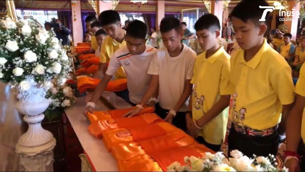 ญาติพี่น้องของทีมหมูป่า พาเยาวชนทีมฟุตบอล 11 คน และโค้ชเอก รวม 12 คน ทำ พิธีสืบชะตาสู่ขวัญสะเดาะเคราะห์ และทำบุญแผ่ส่วนกุศลไปให้จ่าแซมผู้ล่วงลับ...