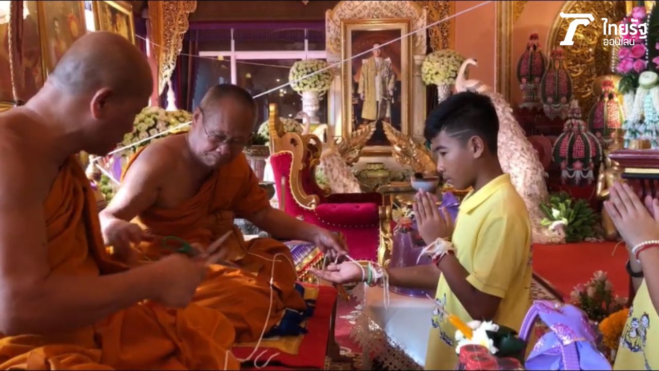 เมื่อเวลา 04.00 น.วันที่ 19 ก.ค 61 ผู้ปกครองญาติพี่น้องของทีมหมูป่า พาเยาวชนทีมฟุตบอล 11 คน และโค้ชเอก รวม 12 คน มาเตรียมพิธีสืบชาตะสู่ขวัญสะเดาะเคราะห์ ส่วน ด.ช.อดุลย์ สามออน หรือน้องดุลย์ ไม่ได้มาร่วม เนื่องจากนับถือคริสต์เพียงคนเดียว