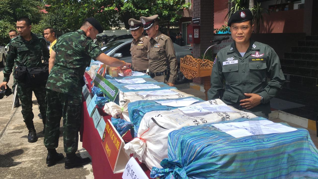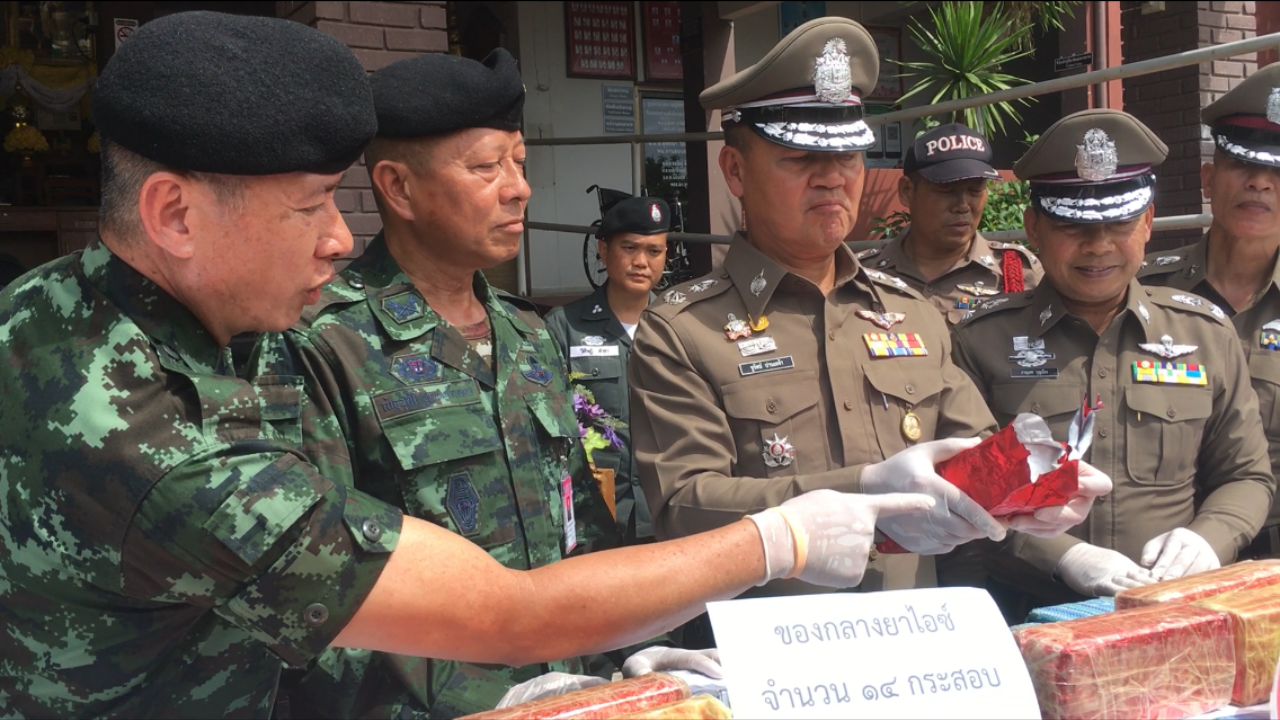 รอง ผบช.ภ.5 ร่วมกับทหาร แถลงจับ 7 ผู้ต้องหาพร้อมของกลางยาไอซ์ จำนวน 343 กก.บริเวณเส้นทางบ้านพญาพิภักดิ์-บ้านใหม่พัฒนา เชียงราย ที่กลุ่มคนร้ายลำเลียงเพื่อไปส่ง ขณะเดียวกัน ตร.พยายามเพิ่มมาตรการสกัดกั้น โดยปรับเปลี่ยนตามสถานการณ์ เพื่อหยุดยั้งทำสงครามกับยาเสพติด...